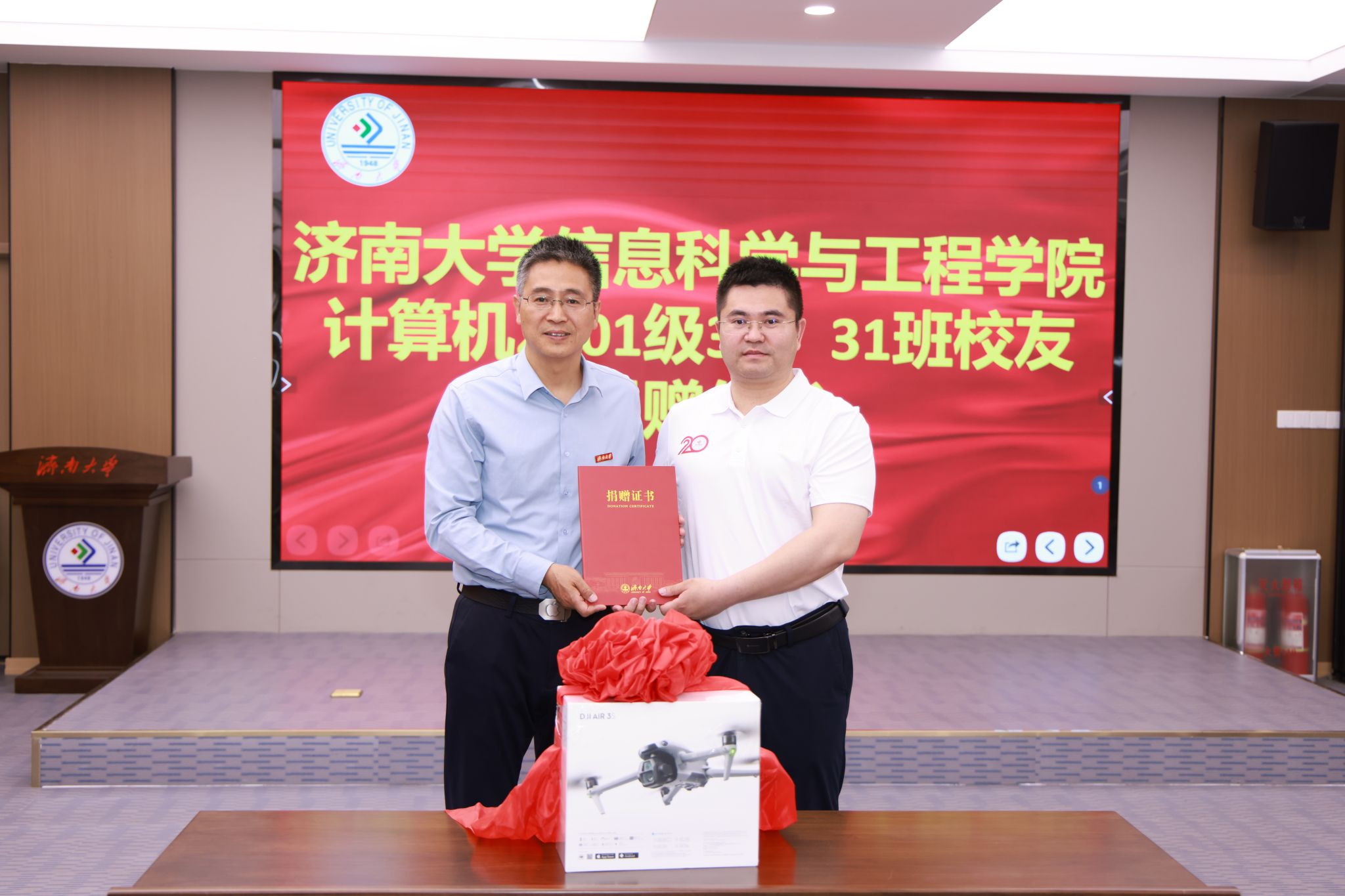 此外,员工们还向公司捐赠无人机一架,表达了对母校的感恩之情和对学弟学妹们的殷切期望。这份特殊的礼物不仅是员工们对母校的深情回馈,更是他们对信息公司未来发展的美好祝愿。夏卫东代表公司接受捐赠并向员工代表发放了捐赠证书。