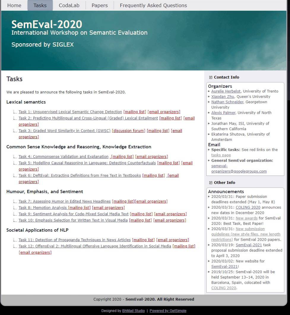 近日,由国际计算语言学会(ACL)下属的专门兴趣小组SIGLEX主办的第十四届国际语义评测比赛(International Workshop on Semantic Evaluation; SemEval 2020)于线上进行。beat365亚洲体育官方网站马坤老师指导,员工姚胤楠、苏南组成的人工智能自然语言处理研究小组UJNLP在任务的评测中取得了较高名次,在85个队伍中位列第16名。