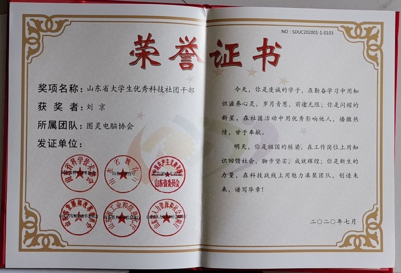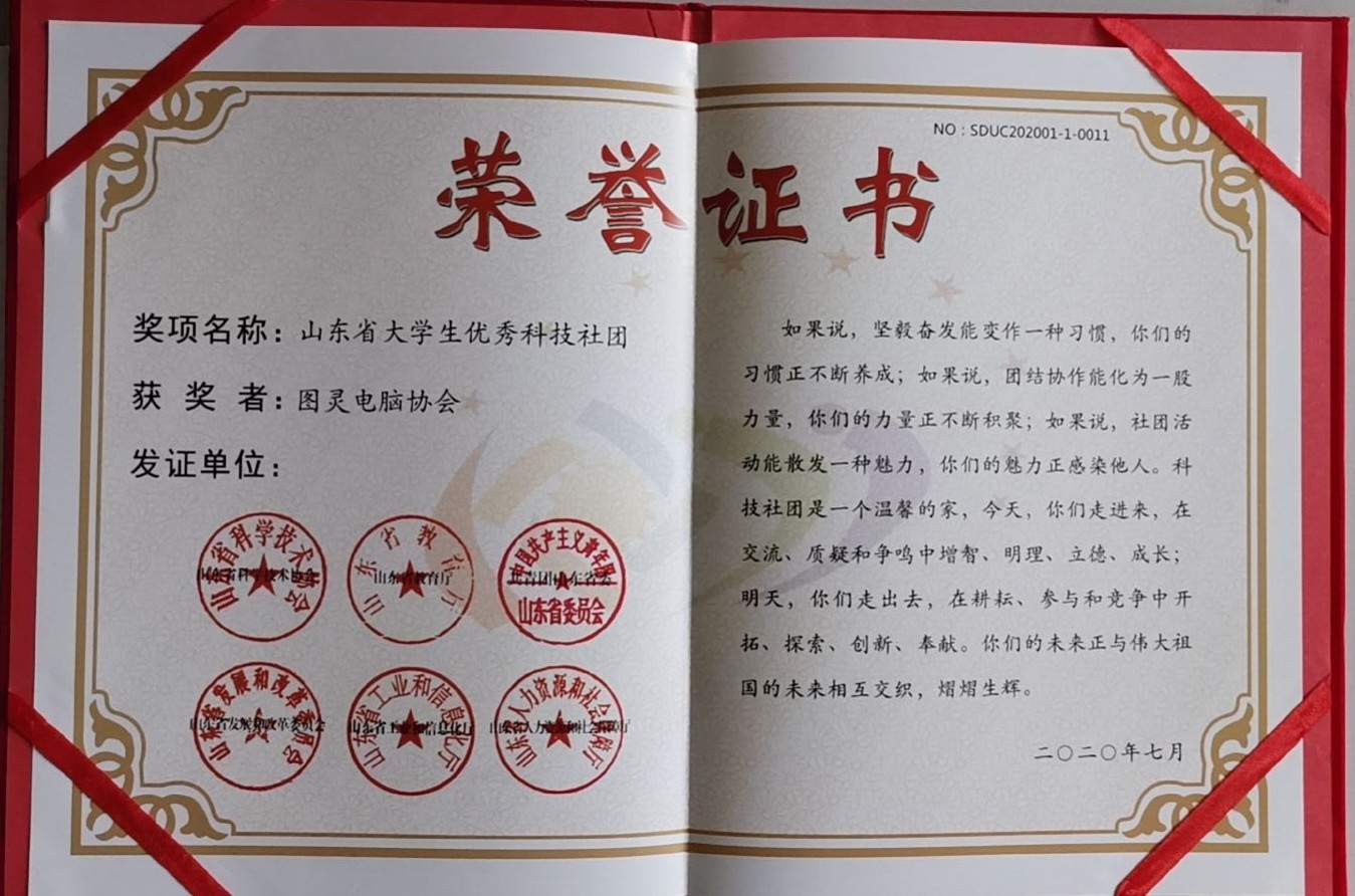 近日,按照山东省科技协会、山东省教育厅、共青团山东省委、山东省发展和改革委员会、山东省工业和信息化、山东省人力资源和社会保障厅《关于举办第十二届山东省老员工科技节的通知》,省科协组织开展了2020年山东省老员工优秀科技社团和优秀科技社团干部评选活动。经评审,公司beat365亚洲体育官方网站图灵电脑协会荣获“2020年山东省老员工优秀科技社团”称号,刘京同学获“2020年山东省老员工优秀科技社团干部”。
