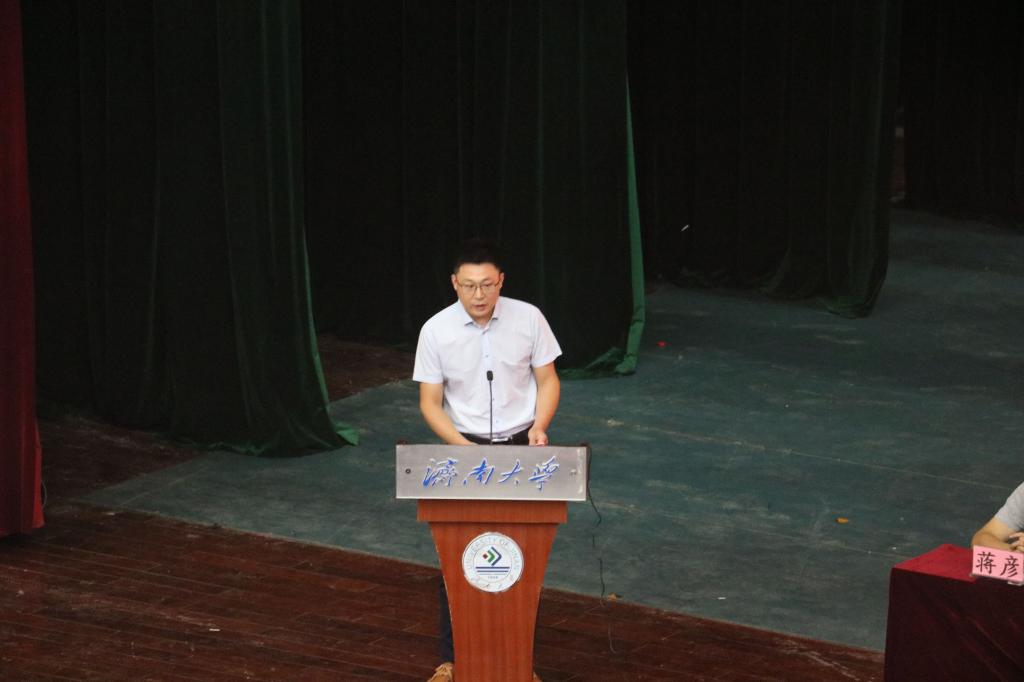 随后,优秀教师代表牛四杰展现了公司教师的风采。他指出,由一名信息公司的新生,真正成长为“弘毅博学、求真至善”的“济大人”,是需要大家用未来四年,甚至更长时间来努力完成的。并对新生提出四点建议,一是志存高远,树立目标;二是脚踏实地,认真做好每一件事;三是积极面对各种挫折;四是心存感恩,走好未来的人生道路。2016级优秀员工代表杨昊晨代表老生发言,并与在座的学弟学妹分享了该用怎样的心态去迎接济大生活。2019级网络工程专业宋润斐同学代表新生发言,她表示将努力做一个思想品质过硬,学习成绩过硬,责任担当过硬的新时代接班人,书写无愧于时代的壮丽篇章,以优异成绩为母校增光添彩,为社会贡献力量。