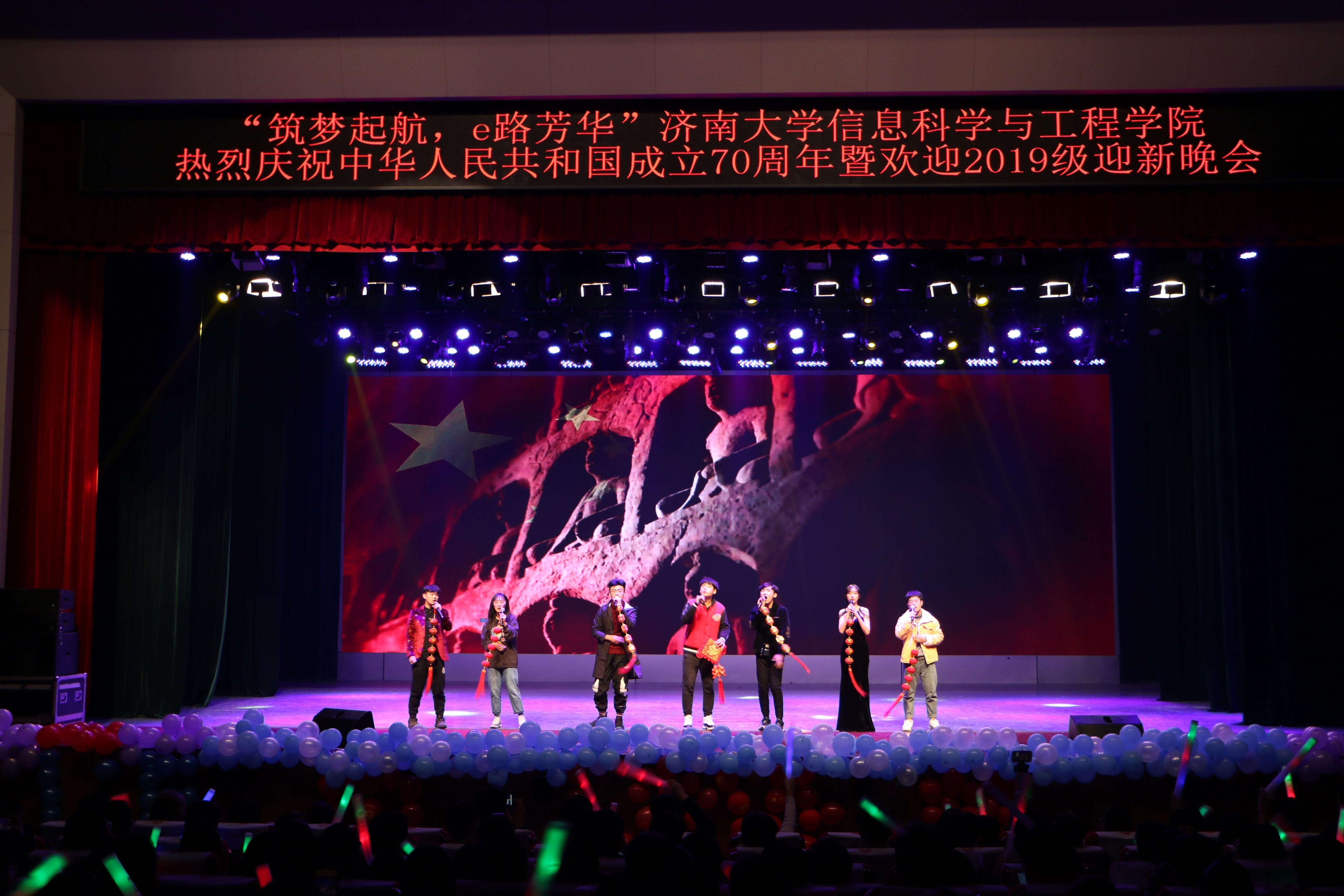 晚会节目种类丰富,开场乐队带动了全场热烈氛围,2017和2019级两位辅导员老师的合唱歌曲《你的答案》更是将全场欢呼声点爆;独唱《放不下》进一步将现场氛围推向高潮,荧光舞《光·音》以新意带给大家视觉的快乐;歌曲串烧《兴耀中华》则紧扣主题,带领同学们走进美丽中国的大好河山,向祖国表达以及我们深切的热爱;洋溢着青春与活力的现代舞蹈《再见梦想,再见梦想》、说唱串烧《步履不停》更展芳华;小品《心爱的敬老院》以幽默诙谐的方式讲述着现代老人的不易,呼唤大家感怀亲情,孝敬父母;铿锵有力的朗诵《七十华章,百年回响》以新时代青年身份讲述伟大的祖国母亲千百年来历经无数艰苦,成就辉煌大业的过程,表达了信息学子对新中国壮丽又伟大的70年的赞美、对新时代的美好憧憬以及牢记使命,不忘初心的坚定信念与决心。最后,晚会在2019级全体班助的《我们都是追梦人》歌声中落下帷幕。