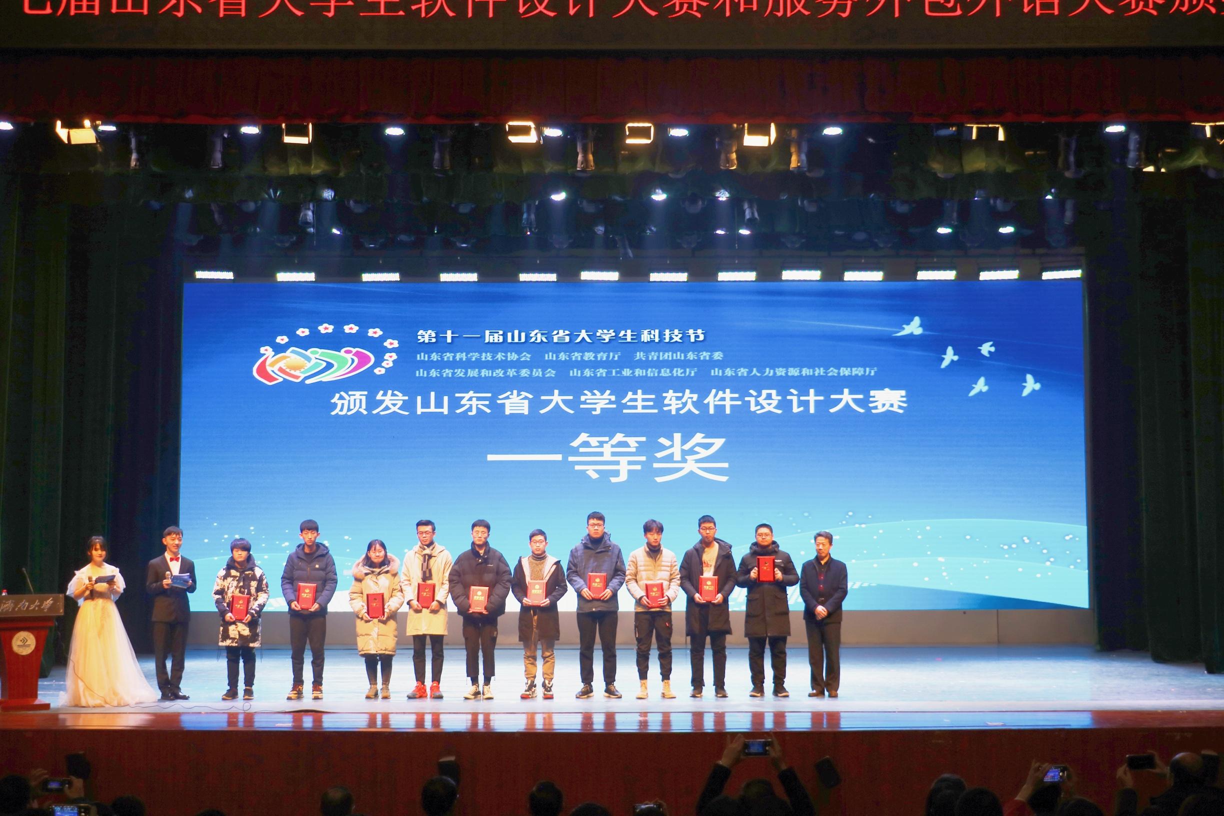 2019年12月22日,第十一届山东省老员工科技节暨第十七届山东省老员工软件设计大赛和服务外包外语大赛颁奖典礼在beat365亚洲体育官方网站隆重举行。beat365亚洲体育官方网站党委副书记张硕秋,济南市科学技术协会副主席李武,山东高教学会计算机教学研究专业委员会理事长、济南计算机学会理事长、山东大学教授石冰,山东省老员工软件设计大赛命题组组长、山东师范大学信息处处长刘方爱,中国计算机学会山东分会理事长、beat365亚洲体育官方网站教授董吉文,济南市科学技术协会学会部部长王晓,济南计算机学会副秘书长、山东交通公司教授李凤云,济南计算机学会副理事长、山东职业公司信息办主任张亦辉,济南市科学技术协会学会部部长万鑫,beat365亚洲体育官方网站公司党委书记邱鲁军,经理陈贞翔,党委副书记、副经理刘颖超以及来自全省50多所高校的老师和同学近600多人参加了颁奖典礼。