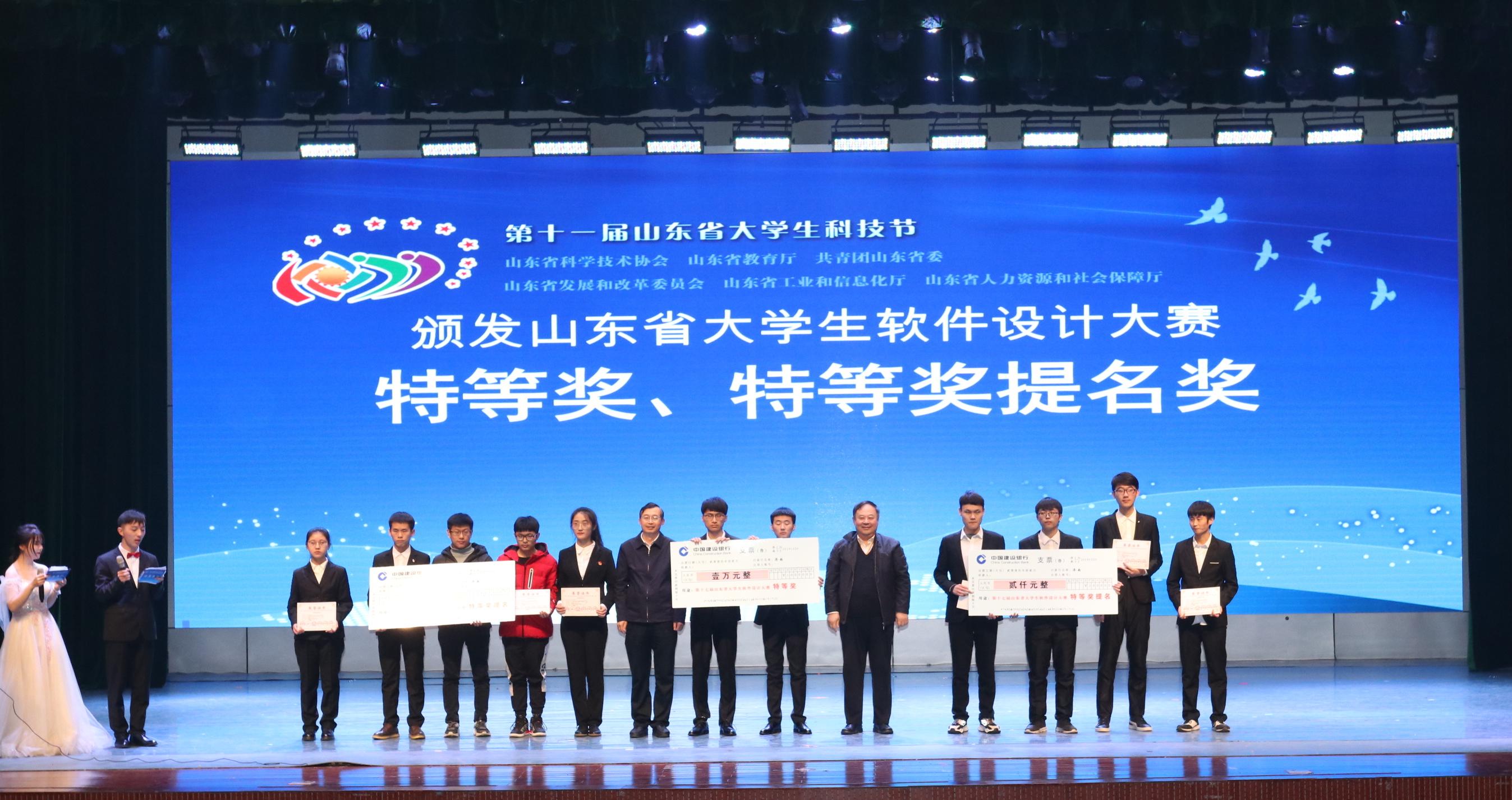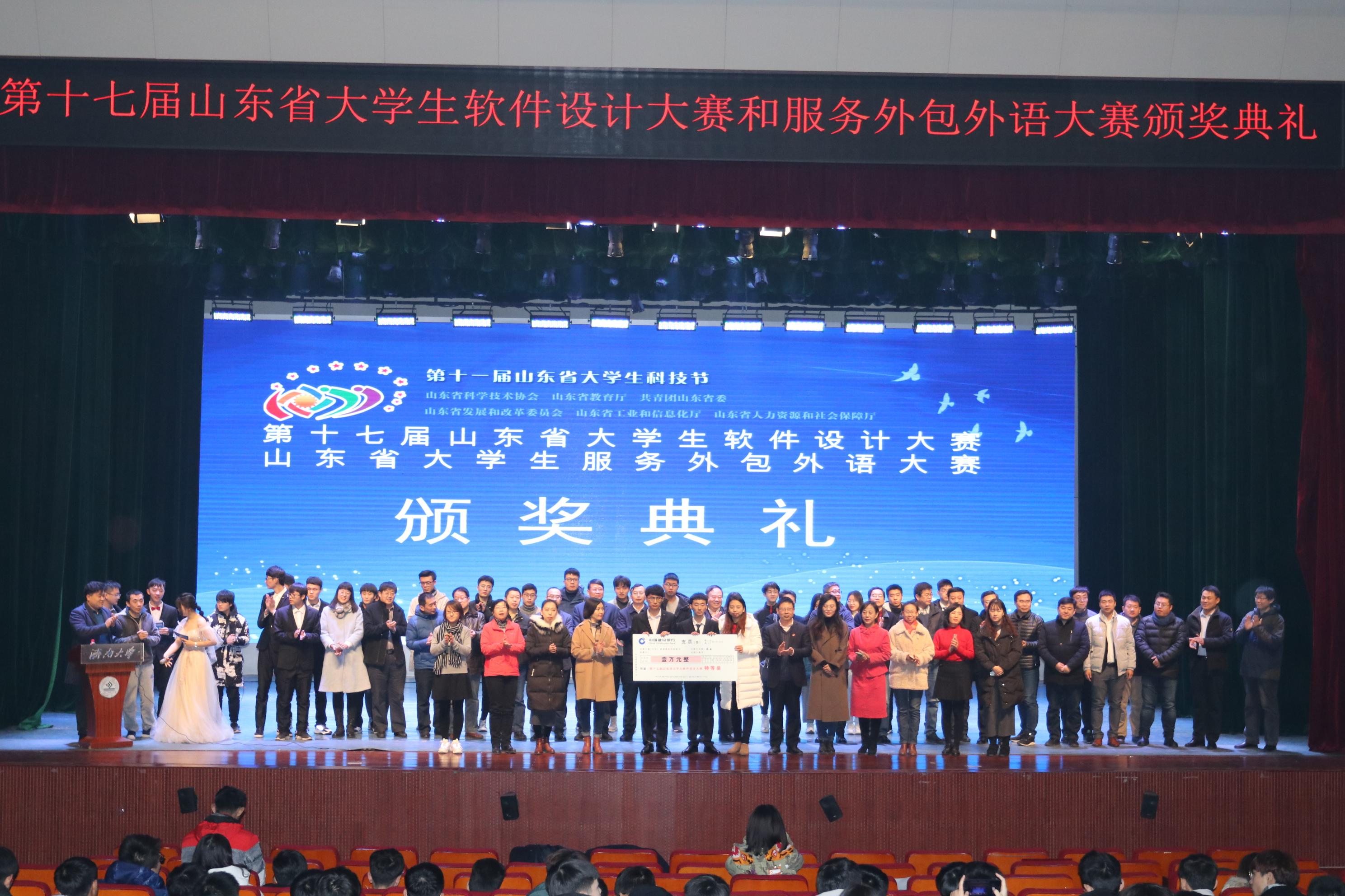 第十七届山东省软件设计大赛共有来自全省75所高校,1300支代表参赛队伍,6000人参赛。经大赛评委会评审,共评出特等奖1项,特等候选奖2项,一等奖97项,二等奖183项,三等奖289项。山东省服务外包外语大赛共评出一等奖9项,二等奖18项,三等奖25项。其中,beat365亚洲体育官方网站参赛队伍共获一等奖8项,二等奖5项,三等奖23项,beat365亚洲体育官方网站获得优秀组织奖。