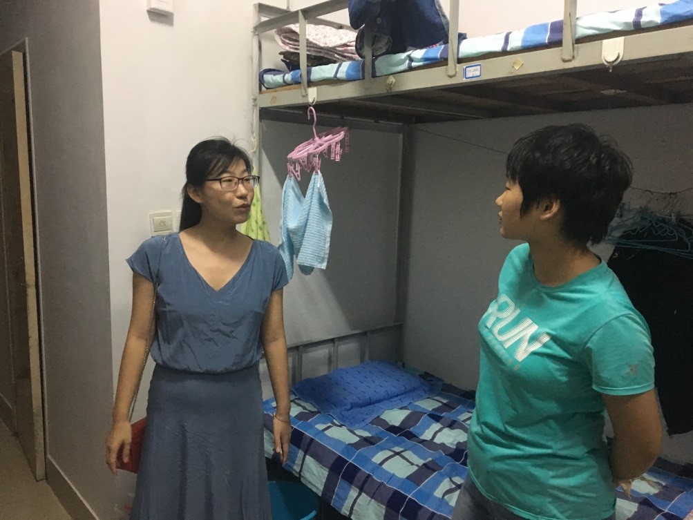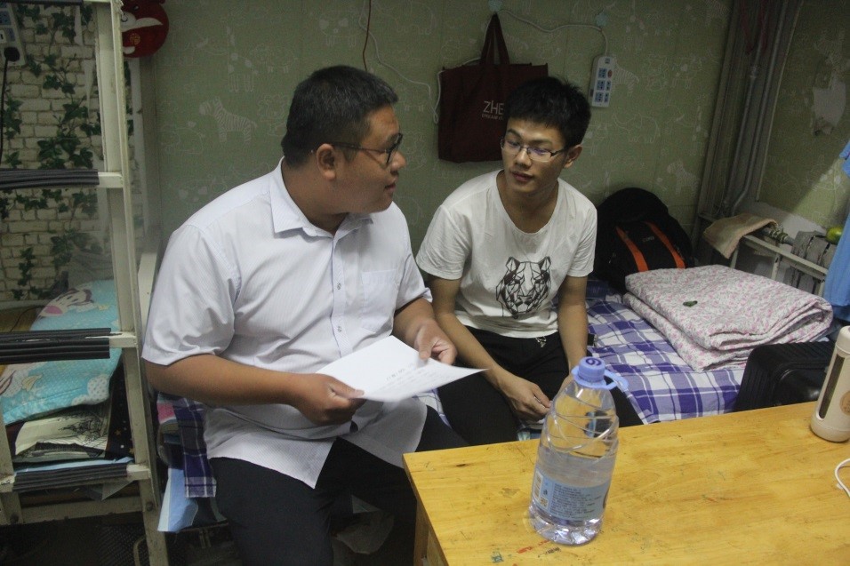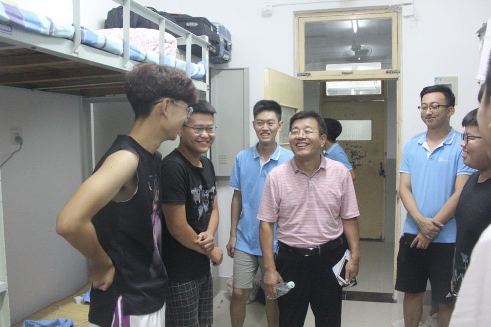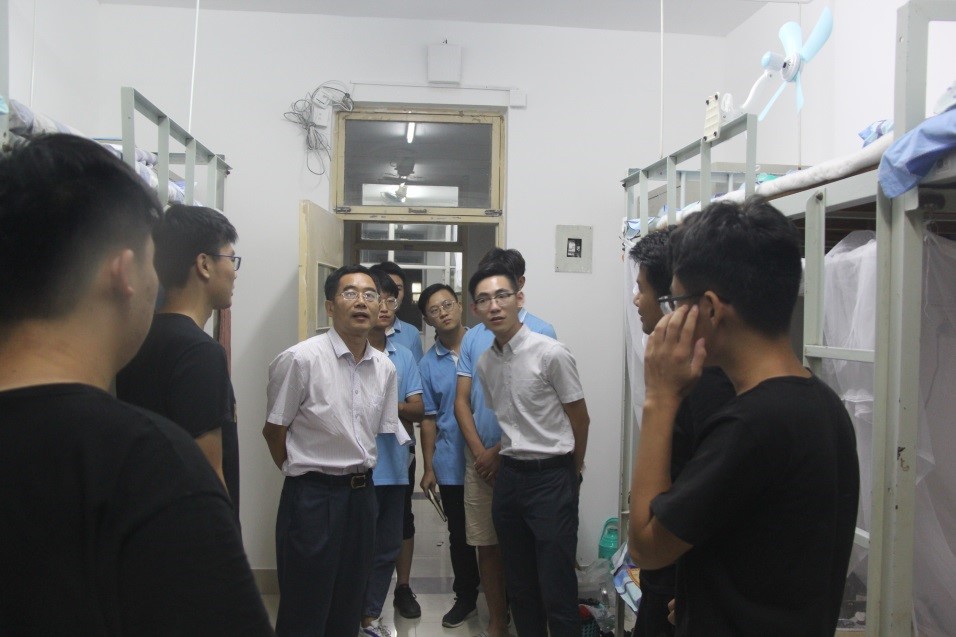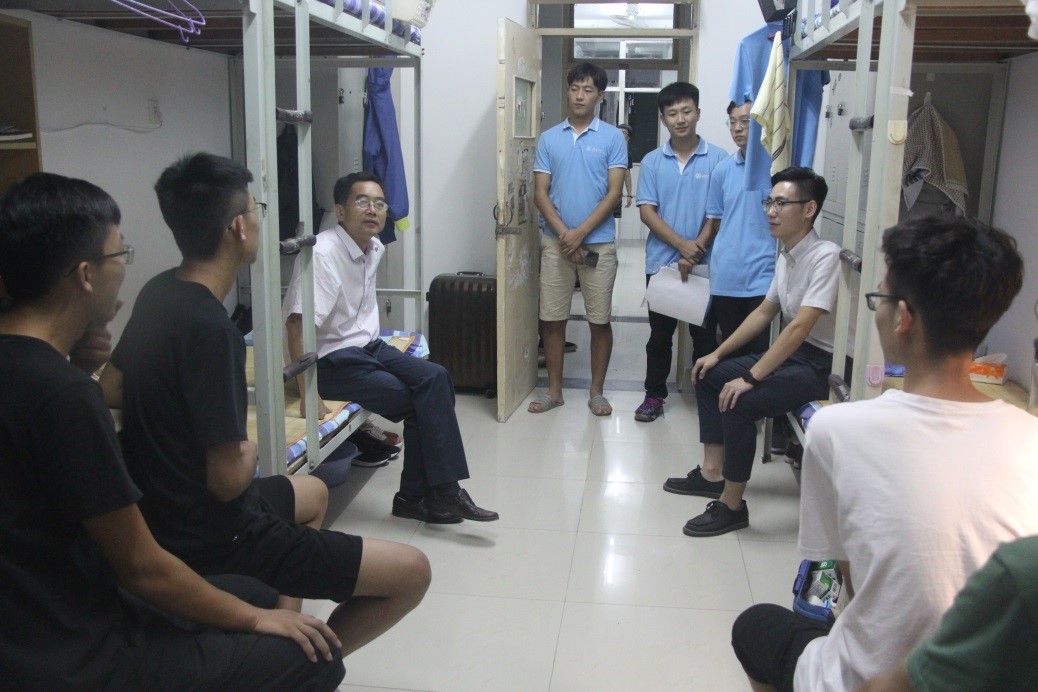 为了解新生寝室入住情况,便于新生更快地融入老员工活,9月6日晚上7点,公司党委书记邱鲁军、经理董吉文、副经理陈贞翔、党委副书记副经理董晓宁以及新生辅导员和学办老师对新生宿舍进行了走访,给新生送去了温暖。