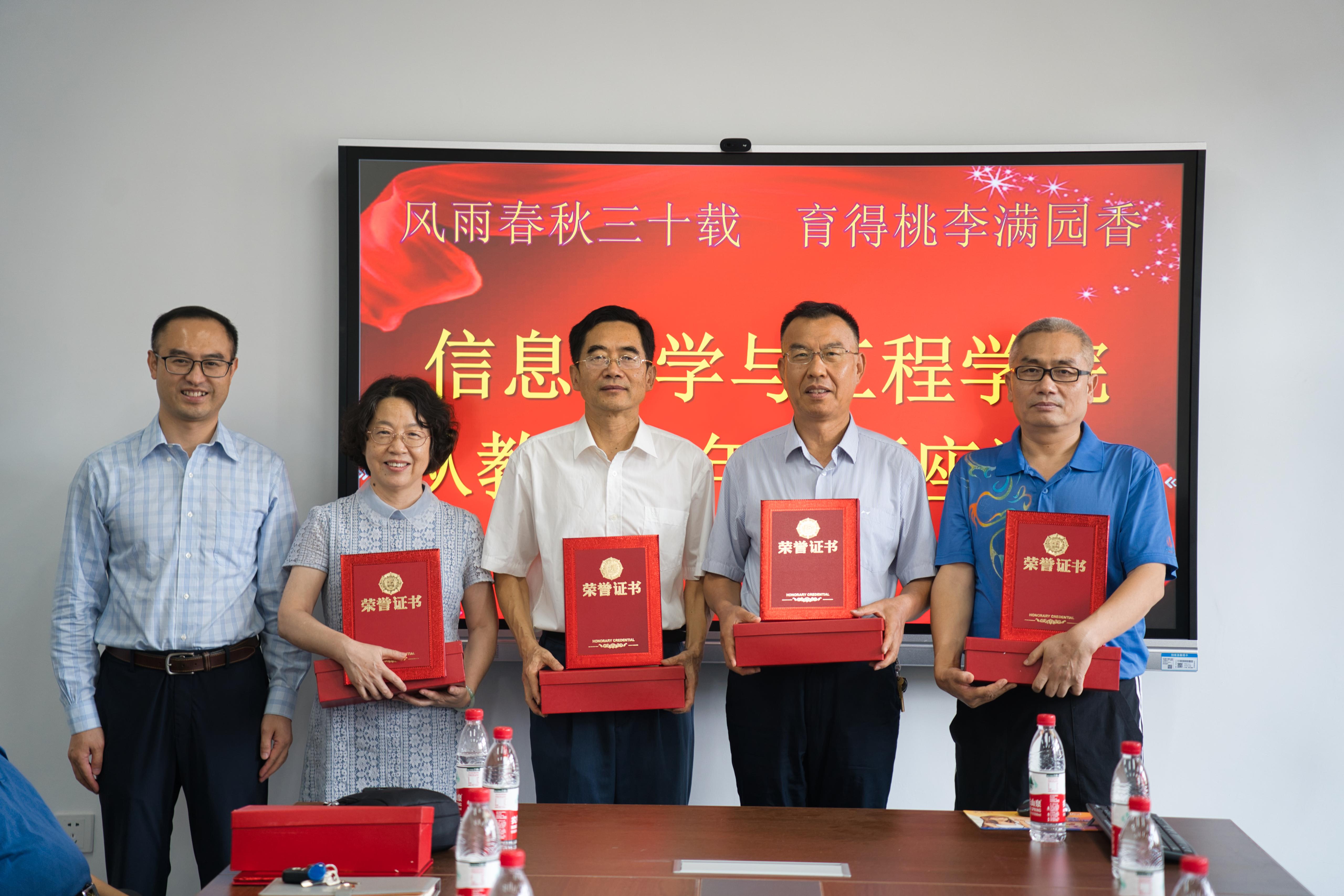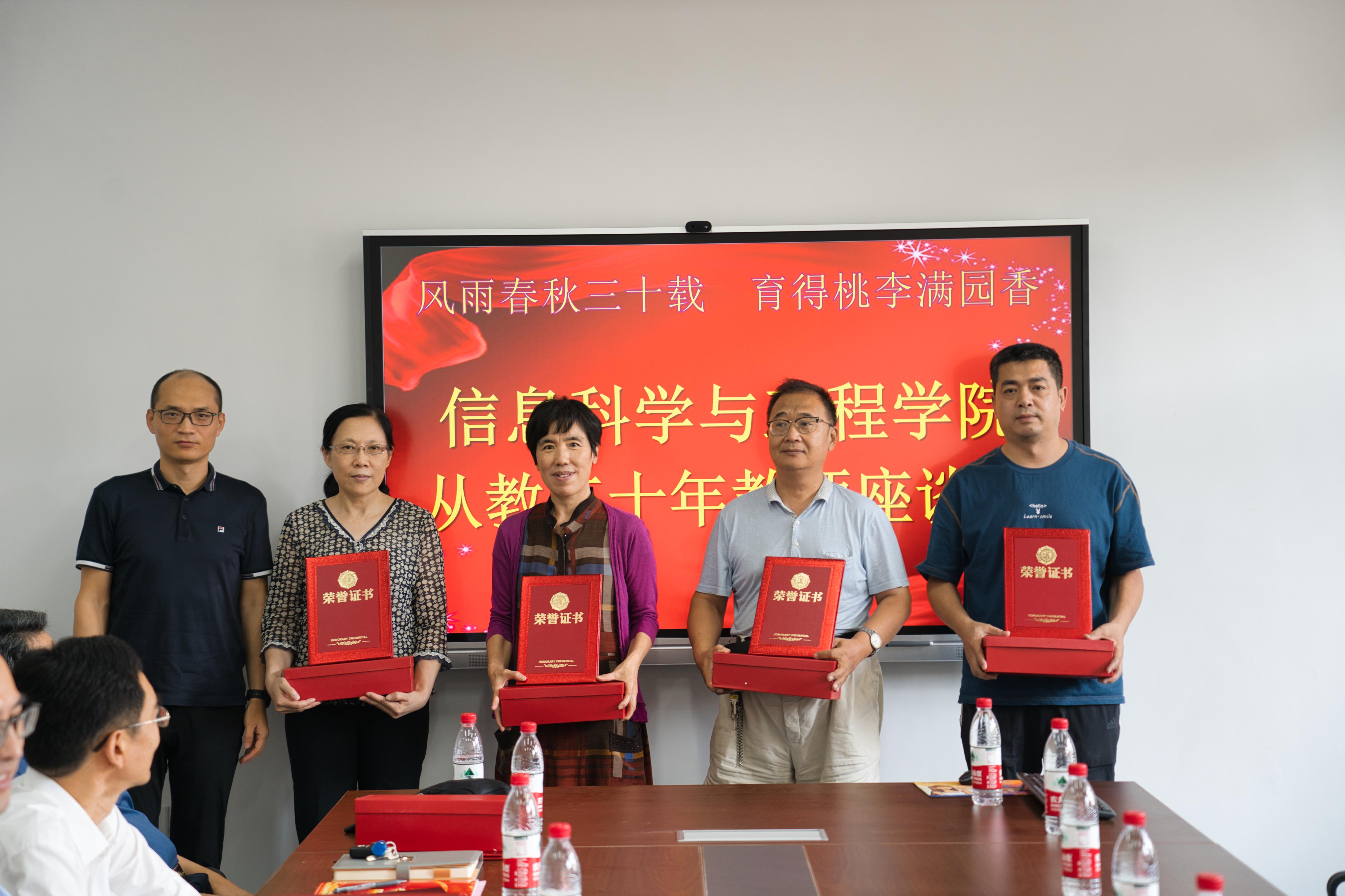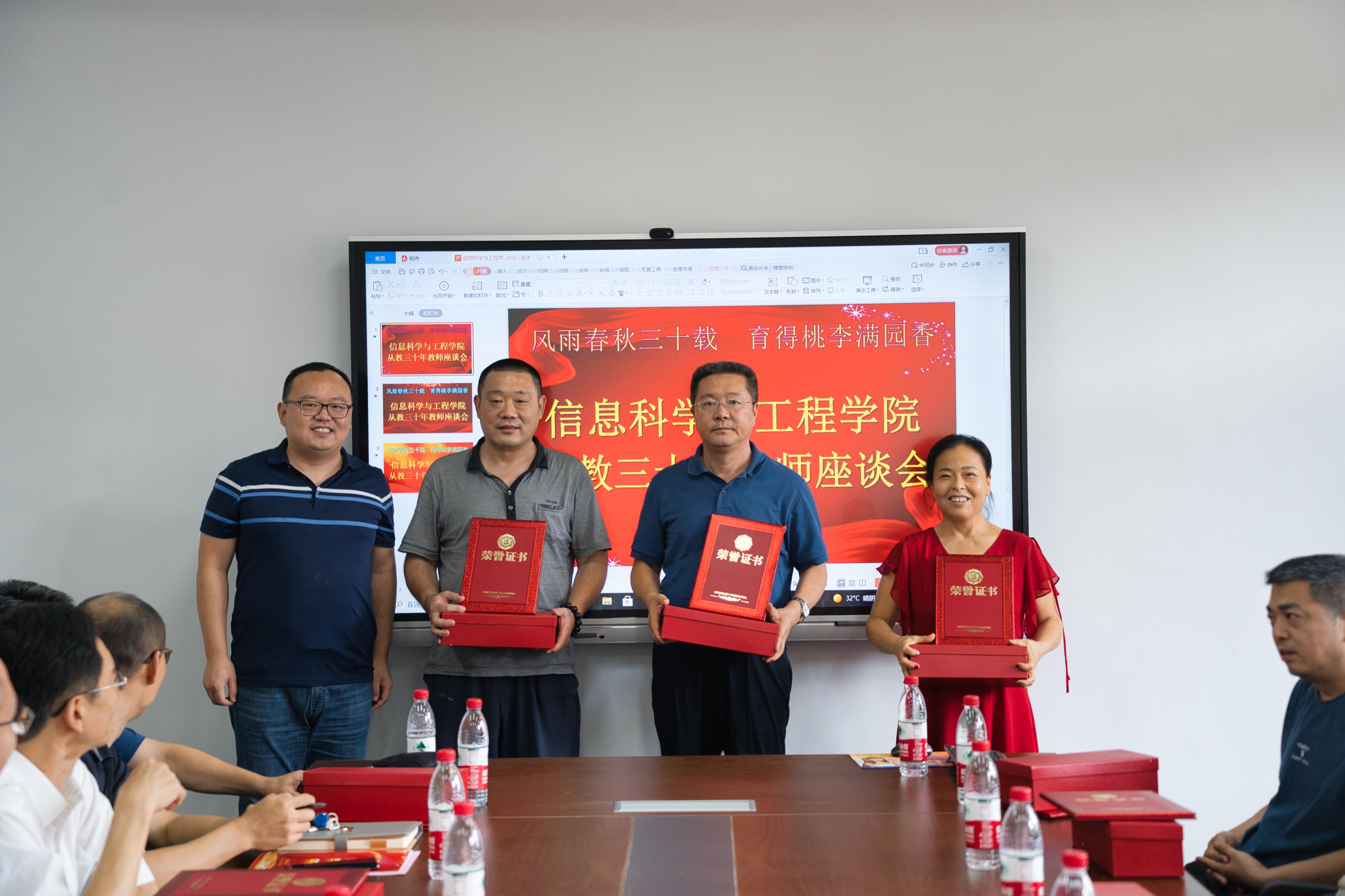 座谈会上,公司党政领导班子为到场的15位教师颁发“从教三十年”证书和纪念奖杯,并同大家合影留念。