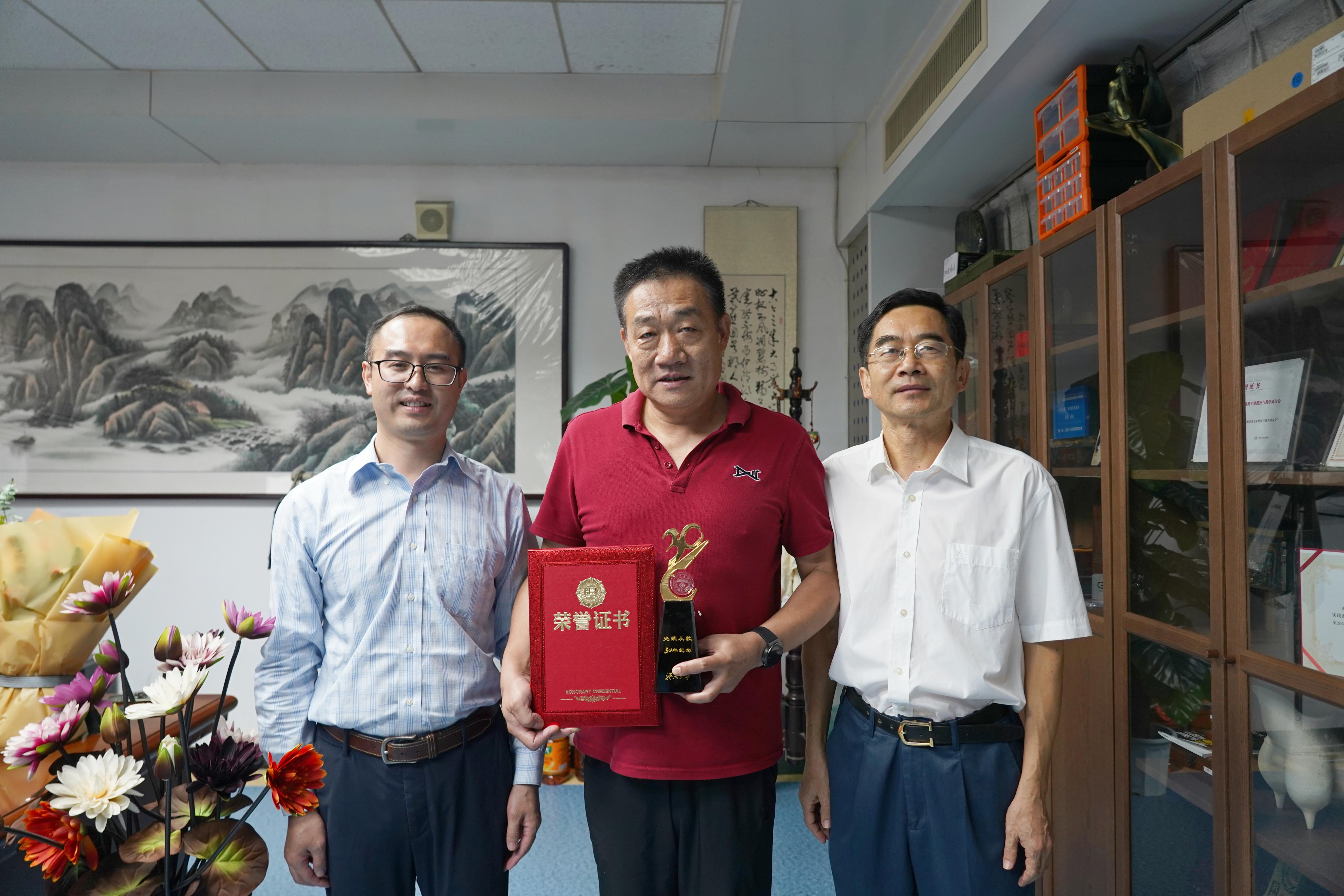 会后,邱鲁军书记和陈贞翔经理代表公司党政领导班子专程看望了原临沂大学董事长、山东省计算机学会理事长、山东省网络环境智能计算技术重点实验室主任杨波教授,为杨波教授送上了“从教三十年”证书和纪念奖杯,并致以节日的祝福,感谢杨波教授为公司发展做出的突出贡献。