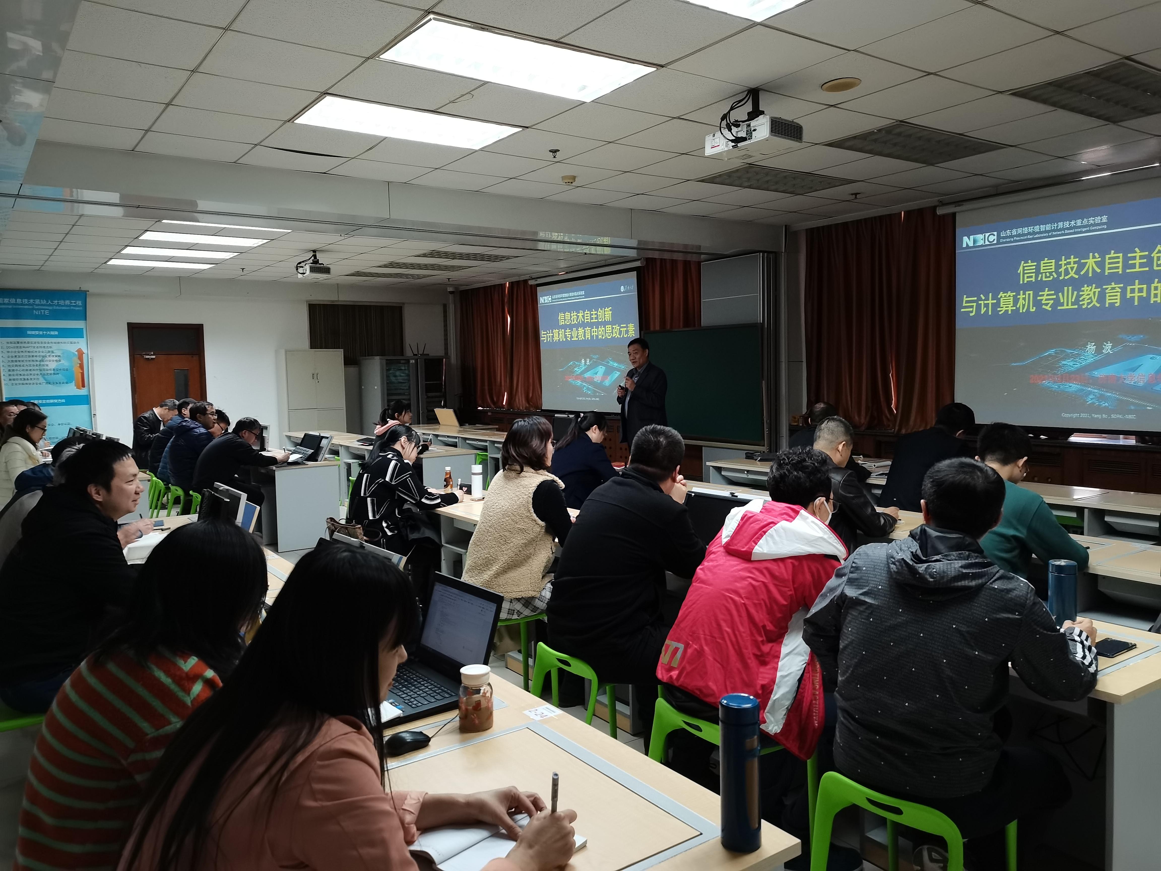 杨波教授以“春天的两会”拉开党课的序幕,他回顾了2015年以来政府工作报告中提出的信息领域新兴技术,指出了从“互联网+”走向“智能+”,是技术发展的必然结果,也是万物互联时代必然的趋势。并重点强调了要以“十年磨一剑”精神在关键核心领域实现重大突破。接下来,杨波教授详细阐述了计算机专业教育中的“信息化”课程思政元素,他指出信息化为中华民族带来了千载难逢的机遇,专业教育要培养员工具有互联网+智能时代发自内心的思想动力和创新冲劲,具有带领团队和群体协同讨论和工作的领导能力,要让员工理解大规模网络中的社交行为并依法维护网络空间安全;在专业课课程思政建设中,应让员工深刻了解社会信息化进程的变化,计算机在这些变化中的推动作用,这些变化对经济、社会发展和全球关系的影响,以及个人在这些变化中应具备的专业知识和能力。紧接着,杨波教授通过生动的案例介绍了目前我国信息技术发展模式的变化,他强调核心技术是国之重器,要下定决心、保持恒心、找准重心,加速推动信息领域核心技术突破。杨波教授提出专业教育要与新时代信息技术发展模式密切结合,要秉承“教育的目的不是灌输、而是点燃”的理念,激发同学们的学习和研究兴趣,为同学们创造发展和进一步深造的机会。最后杨波教授为我们指出了山东省新一代信息技术重大科技创新的几个方向,并与在座的所有教工党员分享了自己的几点思考。