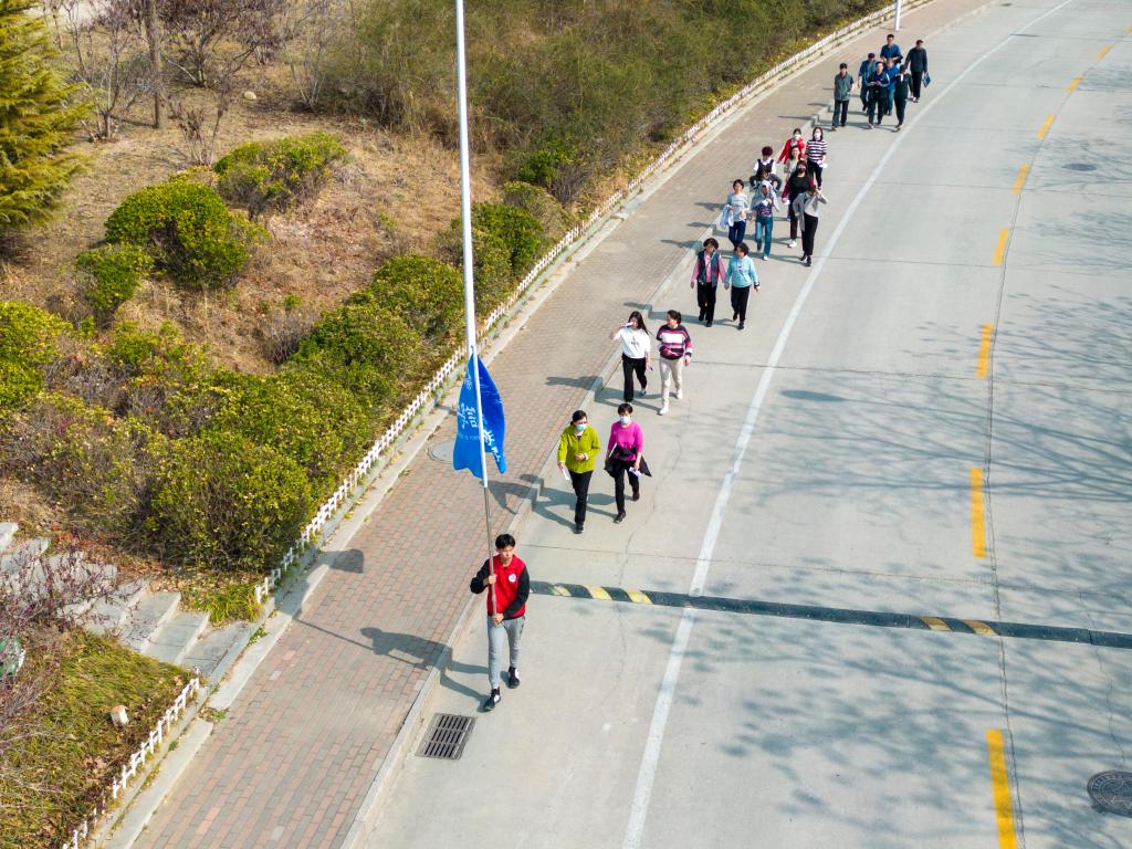 活动伊始,参与活动的教职工在公司南门合影留念。之后,以系部为单位从公司南门出发,途经济大高速、国交公司北、二食堂、八食堂、大学路十教以南、升华广场前、机械公司,最终回到公司北门。活动沿途设置六个打卡点,集齐六枚印章签到打卡,增强了活动的趣味性。在活动过程中,公司教职工们精神焕发,英姿飒爽,步伐稳定而有力,他们相互鼓励和支持,在盎然的春天中大步向前,气氛融洽热烈,展现了公司教职工蓬勃进取的风采。
