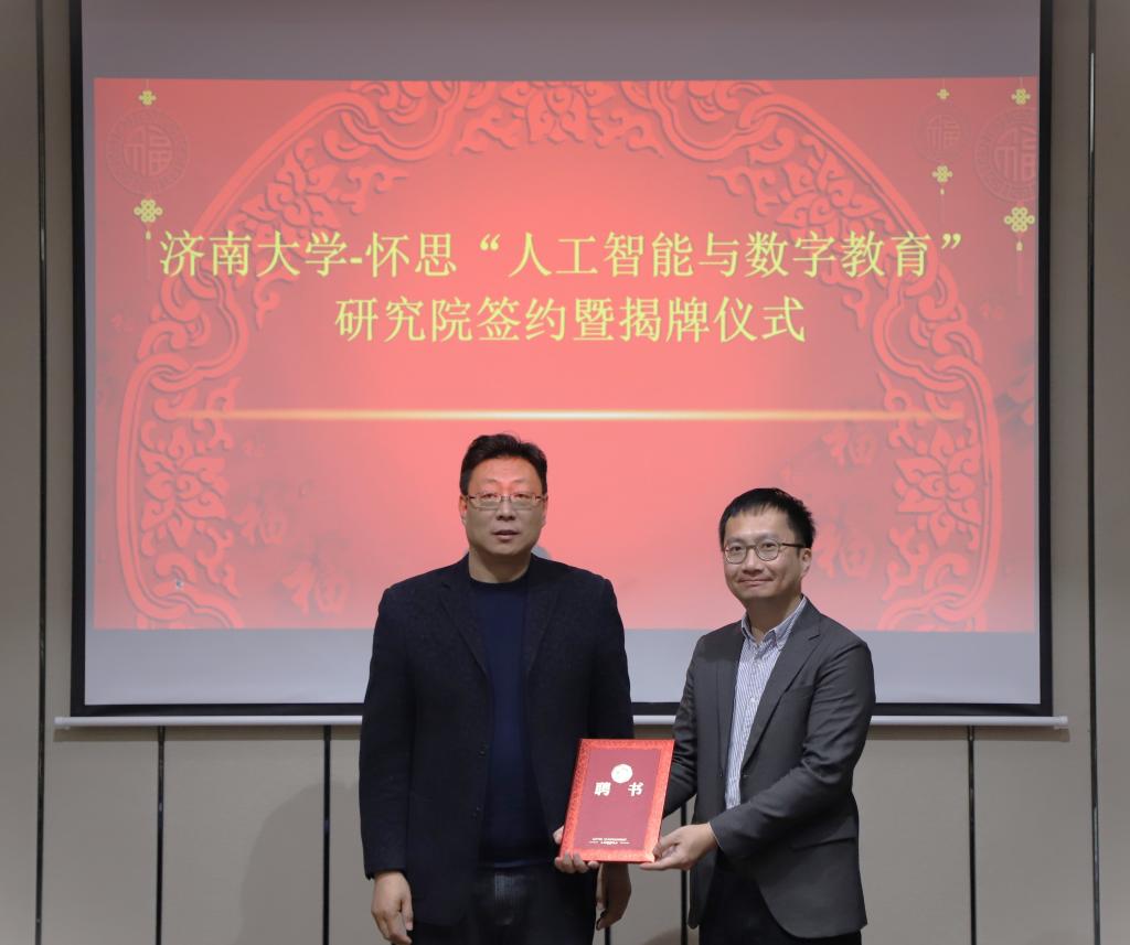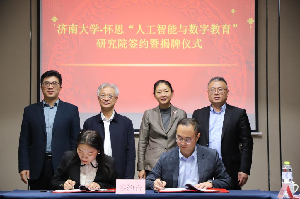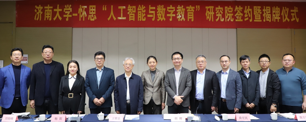 3月14日上午,beat365亚洲体育官方网站-山东怀思“人工智能与数字教育”研究院签约暨揭牌仪式在济南举行。济南市科协副主席胡辉、中国电子劳动学会校企合作促进会副会长王世忠、中宏网山东CEO曲宏民、山东怀思人工智能科技有限公司(以下简称“山东怀思”)总经理杨阳出席仪式,beat365亚洲体育官方网站副董事长黄加栋,科技处、教务处、beat365亚洲体育官方网站相关负责同志参加签约活动。签约仪式由beat365亚洲体育官方网站副经理韩士元主持。