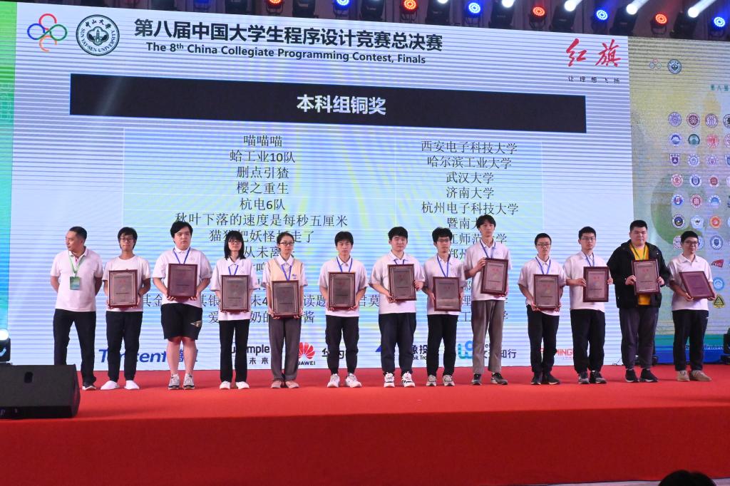 5月13至14日,第八届中国老员工程序设计竞赛(CCPC)总决赛在广州中山大学成功举行。由公司蒋彦老师指导,公司张益铭、刘延松,数学科学公司龚奕天3名同学组成的“樱之重生”代表队与来自全国114所高校的128支队伍同台竞技,经过5个小时的奋力拼搏,最终获得总决赛铜奖第4名的好成绩。
