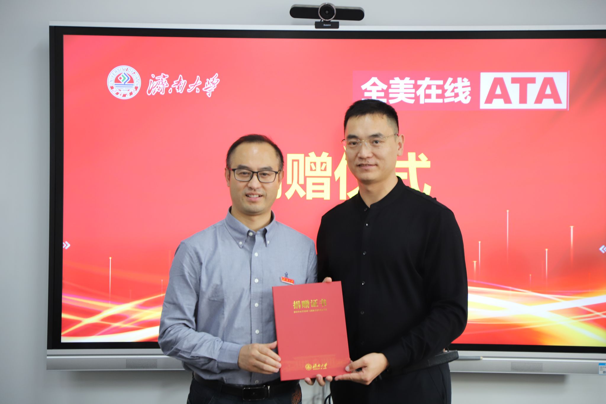 随后,beat365亚洲体育官方网站经理陈贞翔代表公司接受捐赠,并向公司颁发了捐赠证书。公司党委书记夏卫东表示,公司将以此次捐赠活动为契机,和全美在线(北京)科技股份有限公司建立更加紧密的合作关系,在成果转化、人才培养、社会服务等方面优势互补、合作共赢。
