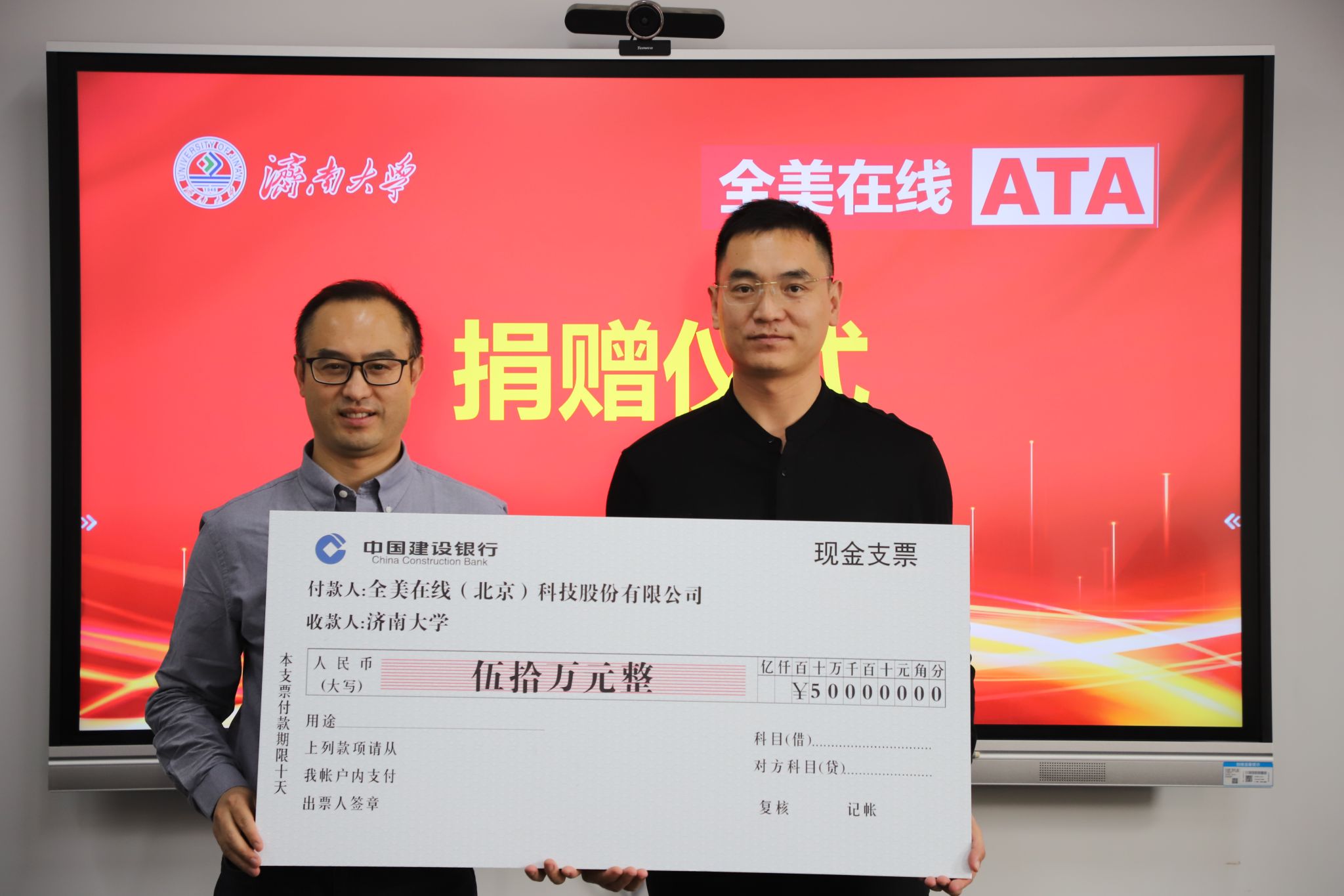 全美在线(北京)科技股份有限公司成立于2006年,公司围绕“一核两翼”的战略布局,专注于考试测评的核心业务,不断向人才能力提升和招聘求职延展,为考试主办方、考生提供考试测评技术和运营服务。在beat365亚洲体育官方网站庆祝办学75周年之际,公司向公司捐赠50万元,专款用于第12号教学楼8层环境改造,将为师生教学、科研等提供更加良好的条件保障。