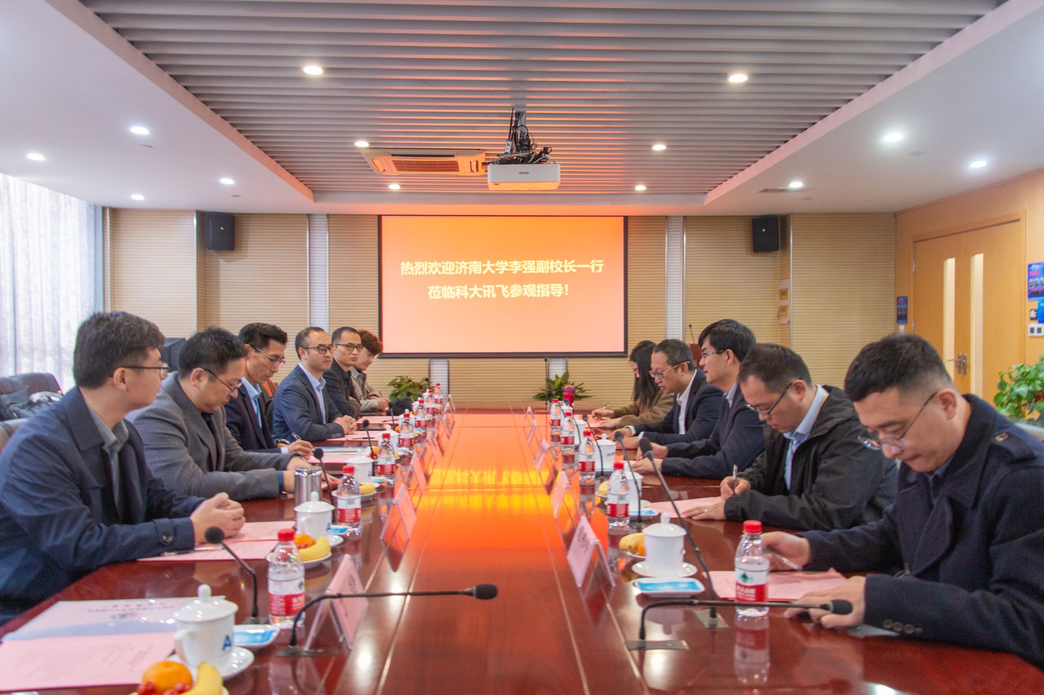 科大讯飞股份有限公司高教业务线总经理陈红斌对李强一行的到来表示热烈欢迎。他从历史沿革、综合实力、业务板块、市场布局等方面介绍了公司基本情况。他表示,依托讯飞星火大模型的强大能力,科大讯飞将助力公司夯实教育数字化能力基座,以新环境、新资源、新评价、新平台、新模式与公司展开全方位深度合作,共同打造具有济大特色的AI+智慧教育生态,助推产教融合发展。