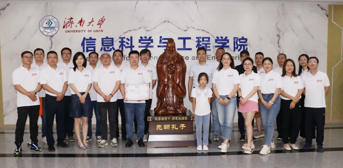 活动最后,电信2000级员工捐赠孔子像揭幕仪式在7楼大厅举行。夏卫东和员工代表应宏光共同为孔子像揭幕,荆山向员工颁发捐赠证书。夏卫东向员工们的慷慨表达由衷的感谢,他表示公司将铭记员工们的深情厚谊,牢记为党育人、为国育才的初心使命,推动公司事业迈上新台阶。