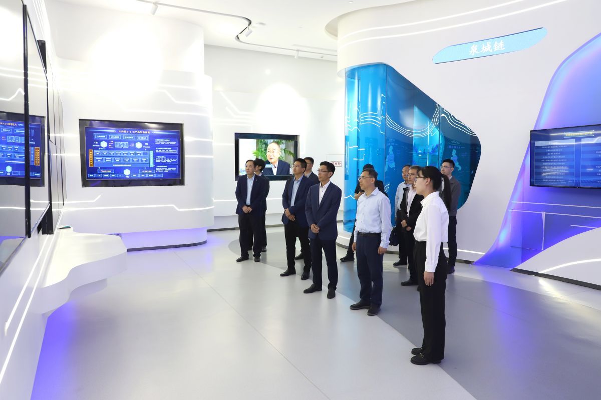 山大地纬软件股份有限公司名誉董事长、首席科学家李庆忠对李强一行的到来表示热烈欢迎,邀请校方领导参观企业文化展厅,并介绍了公司近年来以“AI+区块链”为核心驱动数据要素赋能政务服务、数字医疗健康、智能用电等领域发展情况。