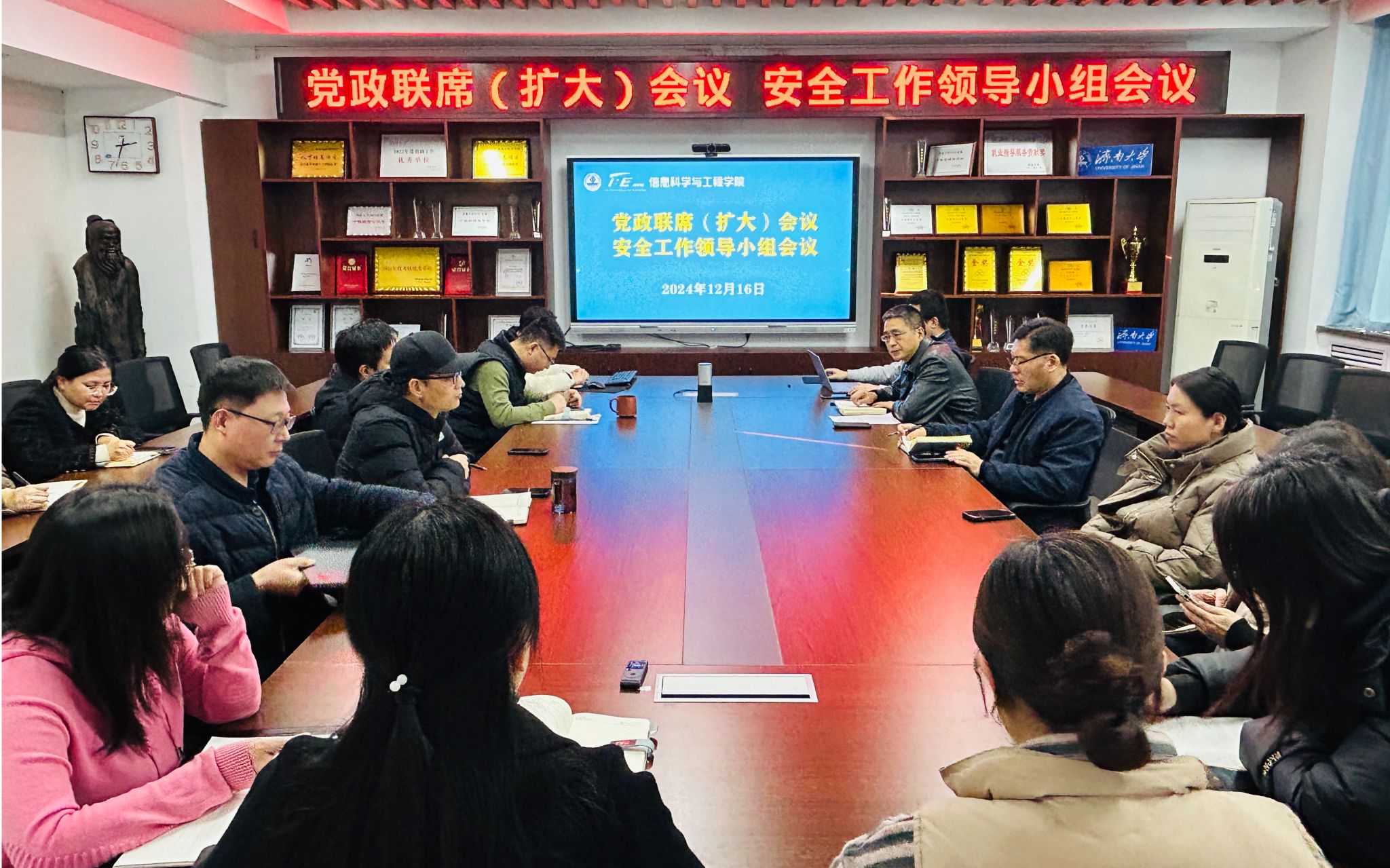 为进一步加强公司安全稳定工作,筑牢安全防线,提升师生安全意识,确保公司工作平稳有序,12月16日,公司召开党政联席(扩大)会议暨安全工作领导小组会议,部署安全稳定工作。公司领导班子成员、各系主任、科研平台负责人、科级干部、各实验室、机房负责人以及全体学工人员参加会议。