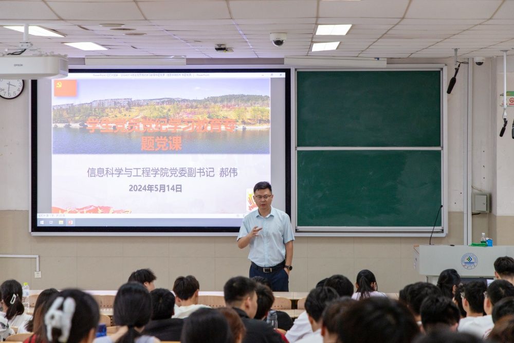 随后,夏卫东以《不忘初心、牢记使命,做合格共产党员》为题进行党课教学。他从“党的百年奋斗历史进程”“党的性质宗旨”“如何加强党性修养”以及“四讲四有——做合格党员的基本要求”等方面,深入浅出向大家讲解了如何做一名合格党员,提醒大家要牢记党的百年峥嵘岁月、传承红色基因、赓续红色血脉,在政治学习上加强理论修养,在专业学习上提升学术水平,在工作和生活中切实践行全心全意为人民服务的根本宗旨。最后,他向大家提出殷切嘱托:新时代、新要求、新使命、新担当,作为新时代青年党员,要不忘初心、牢记使命,在中华民族伟大复兴征程中踏实践行青年人的使命与担当。