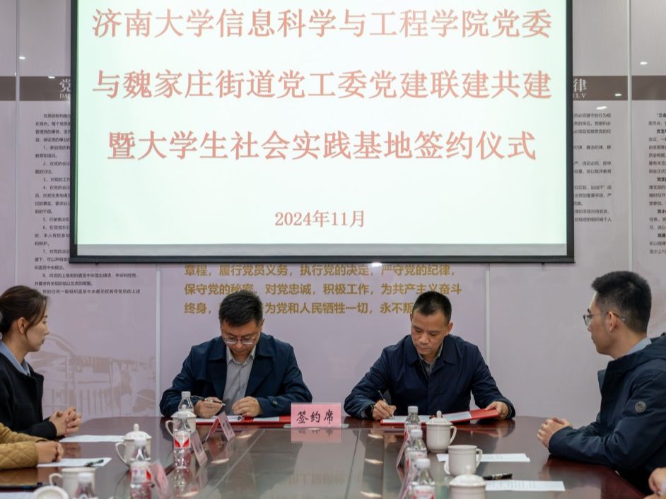 为进一步发挥党建引领作用,加强社区与公司融合共建、优势互补,以党建带团建,深化“百万老员工进社区”社会实践工作,推动基层治理与高校育人“双向奔赴”,11月26日上午,beat365亚洲体育官方网站与济南市市中区魏家庄街道党建联建共建暨老员工社会实践基地签约挂牌仪式在魏家庄街道同生里社区举行,beat365亚洲体育官方网站党委常委、纪委书记、省监委驻beat365亚洲体育官方网站监察专员续铁,公司党委书记夏卫东,党委副书记、副经理郝伟,共青团济南市市中区委书记党淼,济南市市中区魏家庄街道党工委书记徐昕,党工委副书记、政协联络室主任夏定军,同生里社区党委书记廉炳龙,beat365亚洲体育官方网站团委、beat365亚洲体育官方网站相关负责人、魏家庄街道相关负责人以及员工志愿者代表参加仪式。