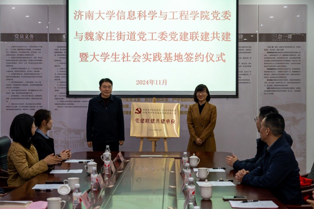 徐昕对此次共建活动表示热烈祝贺,并介绍了魏家庄街道基本情况和党团品牌工作开展情况。她指出,共建活动及社会实践基地为社区和公司合作搭建了很好的交流平台,对强化党建引领基层治理,赋予基层社区治理新动能等方面具有积极意义。希望双方以本次党建联建为起点,统筹推进“组织联建、活动联办、资源联享、治理联动”各项工作,加快推进联建共建协议内容落地见效。社区也将全力为青年学子锻炼成长、施展才华创造更好的舞台,全力做好服务保障工作。
