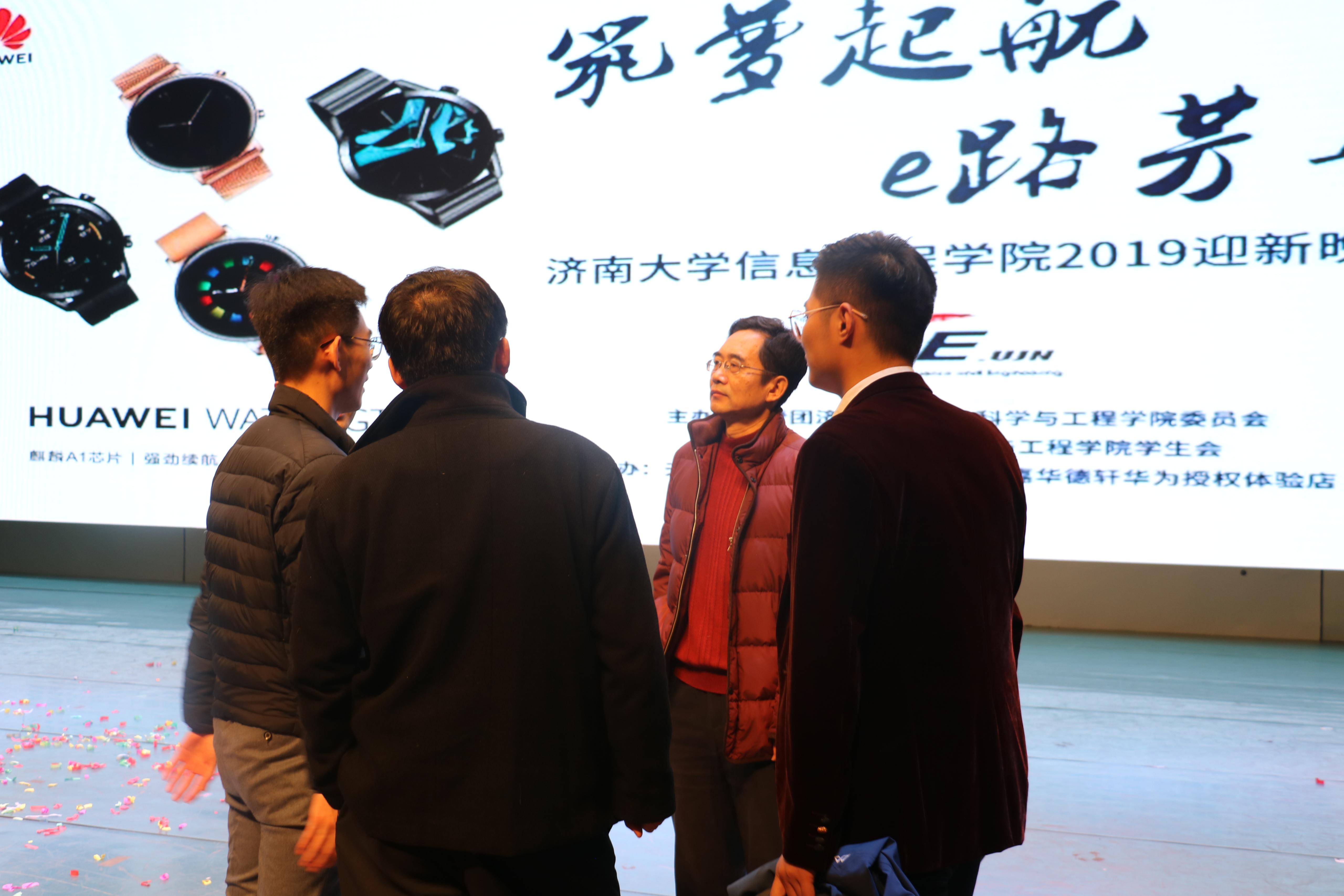 晚会结束后公司新闻部工作人员有幸采访到了出席本次迎新晚会的信息公司党委书记邱鲁军老师和信息公司经理陈贞翔老师,在问到邱书记认为同学们的这场晚会准备如何时,他对此作出表示,同学们的演出很精彩,准备的非常充分,并且对于本次晚会给予高度赞扬。两位领导特别提出,本次晚会的亮点是在于联系了一些社会现象,非常有新意。另外,邱书记表示,参与的同学们各尽其责,将自己的优势发挥到极致,共同配合,相互合作,为我们大家呈现了一场极具热情与青春活力的视听盛宴。
