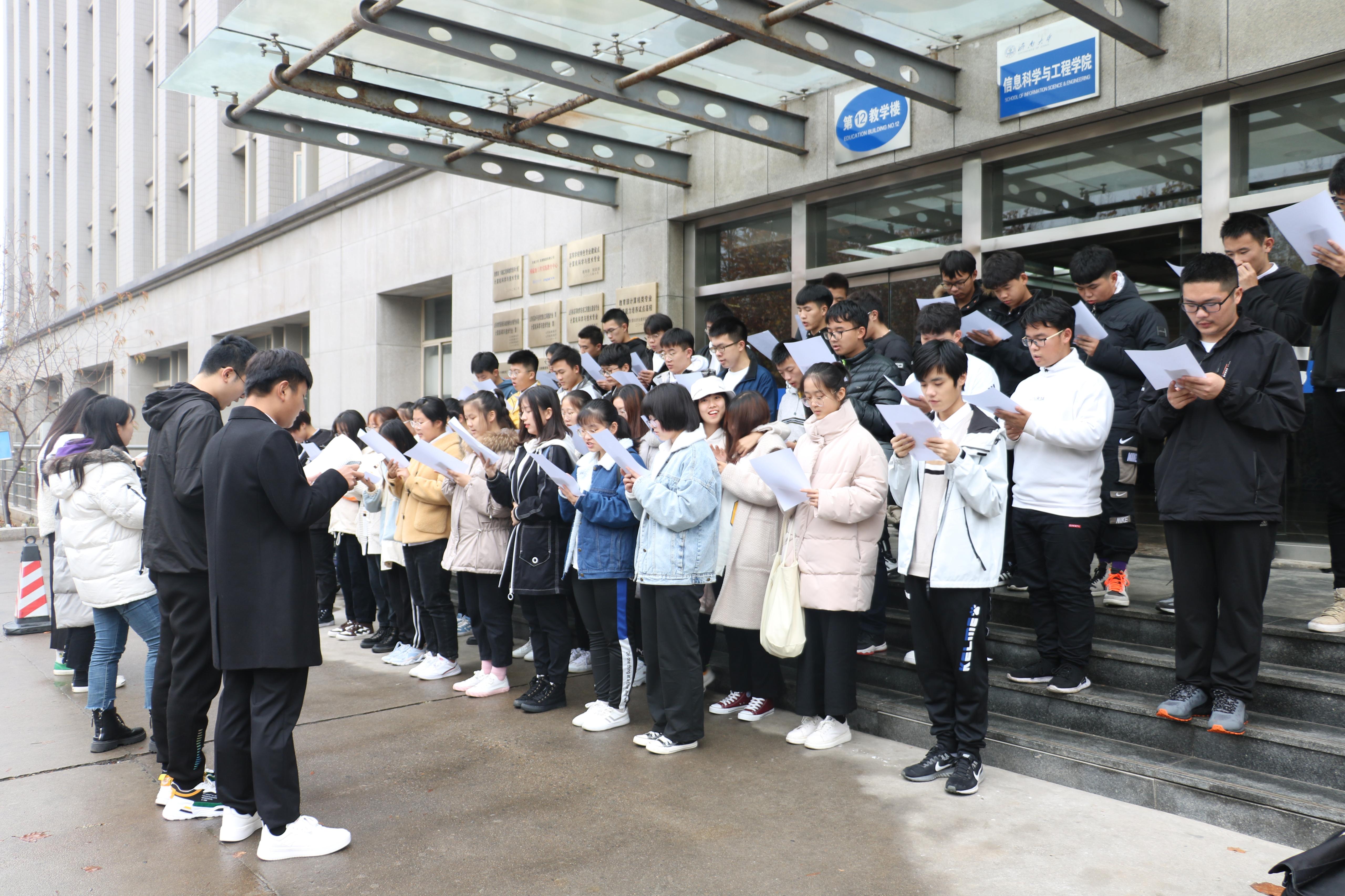 为大力宣传宪法精神,提高公司员工遵纪守法意识,在全院形成崇尚宪法、遵纪守法、爱法护法的浓厚氛围。2019年11月24日,beat365亚洲体育官方网站在第十二教学楼北举办了晨读宪法活动。宪法是国家的根本大法,希望通过庄严的晨读宣读仪式,让同学们在心目中树立起对宪法的信仰。