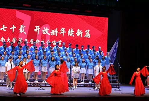 适逢济大七十周年华诞,举校同庆欢乐之际。beat365亚洲体育官方网站第五届新生合唱比赛紧锣密鼓的进行中,本次合唱比赛的主题为“广学名德七十载,开放卌年续新篇”,在10月21日晚的大礼堂进行的合唱比赛中,beat365亚洲体育官方网站作为第六组登场亮相。