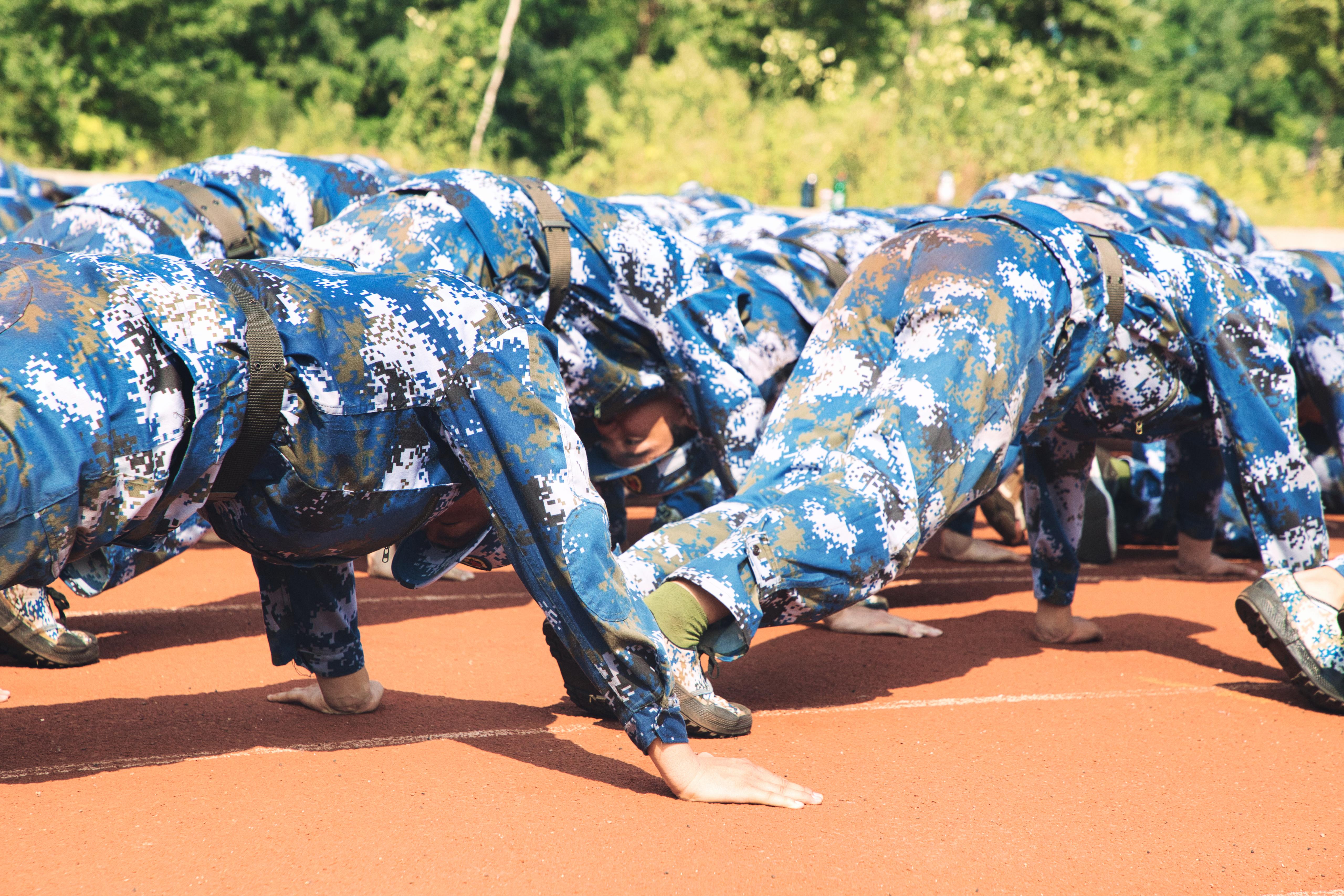 “军训是老员工入学必将经历的过程,除了学术上的思考和积累,坚定的心智和耐力也是一位合格的老员工所必须拥有的。”每一次坚持,每一次调整,都是同学们对自己的挑战,坚毅的脸庞,顽强的身姿,笔挺的军装,在红色的跑道上,组成了一幅和谐而完美的画面。欲与烈日试比强,太阳晒黑了我们的皮肤,却铸就了我们的坚强。