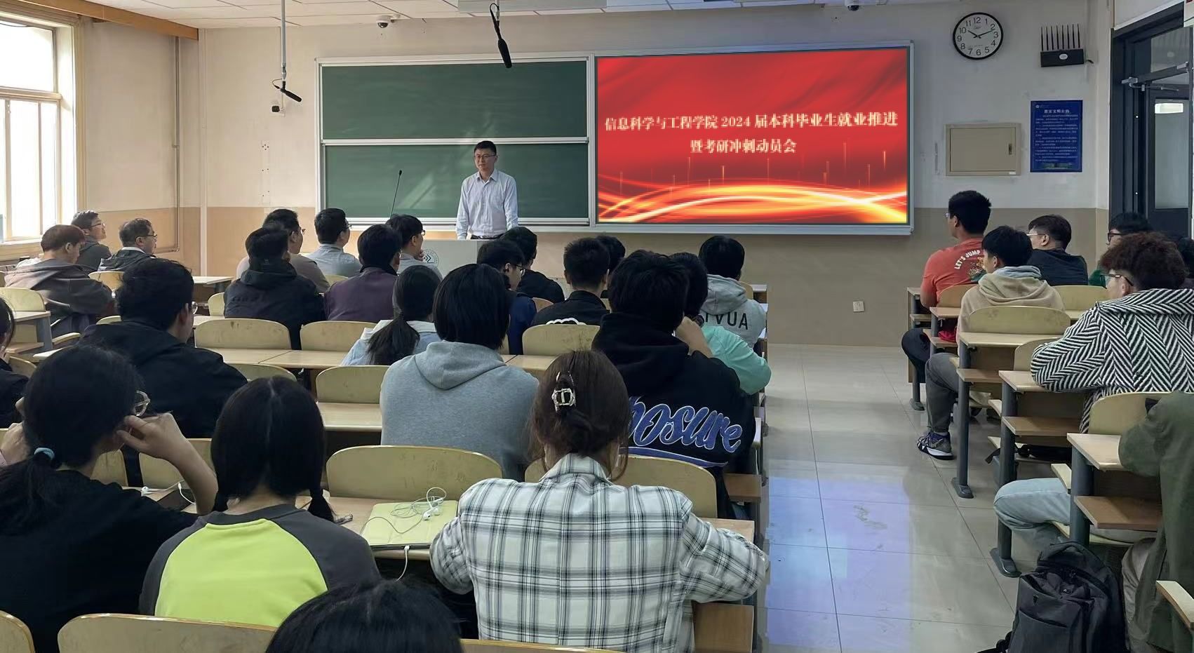 为推动公司本科毕业生社会就业及考研升学指导工作开展,10月25日上午,2024届本科毕业生就业推进暨考研冲刺动员会于第十教学楼顺利召开。公司党委副书记、副经理郝伟,副经理杨晓晖,各系系主任,部分研究生导师及相关学工人员出席本次会议,2024届200余名本科毕业生代表参加会议。会议邀请山东大学李阳教授,公司集成电路系系主任张春伟副教授,计算机系牛四杰教授、夏英杰老师和王琳教授课题组在读博士宁帅作指导交流。动员会由2020级辅导员孟莹主持。