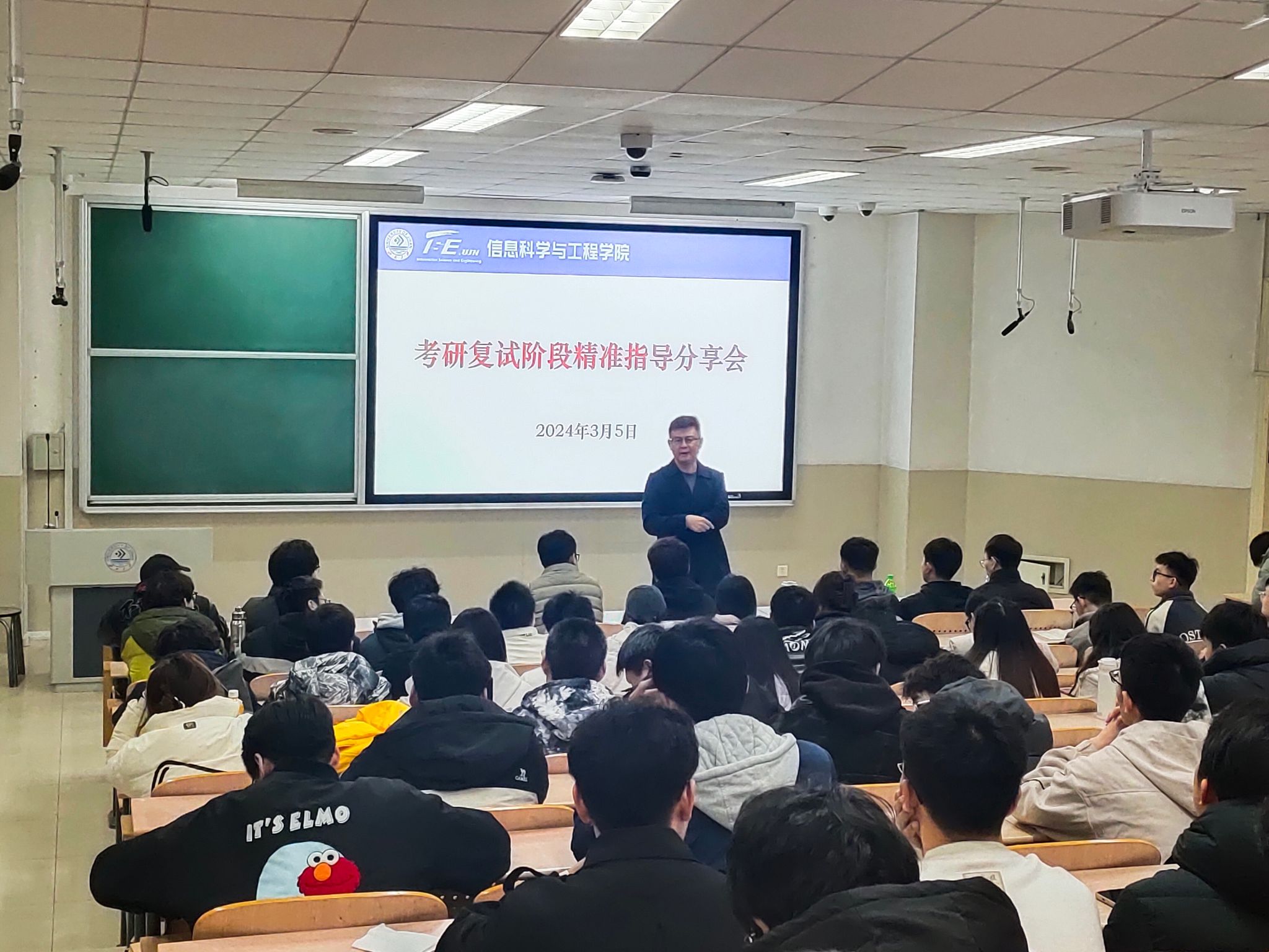 在2021级年级大会上,郝伟从2024年公司学子考研初试实际情况出发,为同学们分析了当前考研形势,表达了对同学们的殷切期望。公司邀请专业老师为大家做考研指导,从考研上岸必备素质、院校专业如何选择、当前阶段复习任务等方面进行了详细介绍。最后,辅导员丁铮结合个人求学经历与工作经验,与同学们进行了关于合理择校、科学备考的交流分享。她鼓励大家将“行动”和“努力”作为新学期的关键词,发扬持之以恒、水滴石穿的精神,增强学习主观能动性,结合个人目标与未来发展方向进行合理规划并付诸实际行动。
