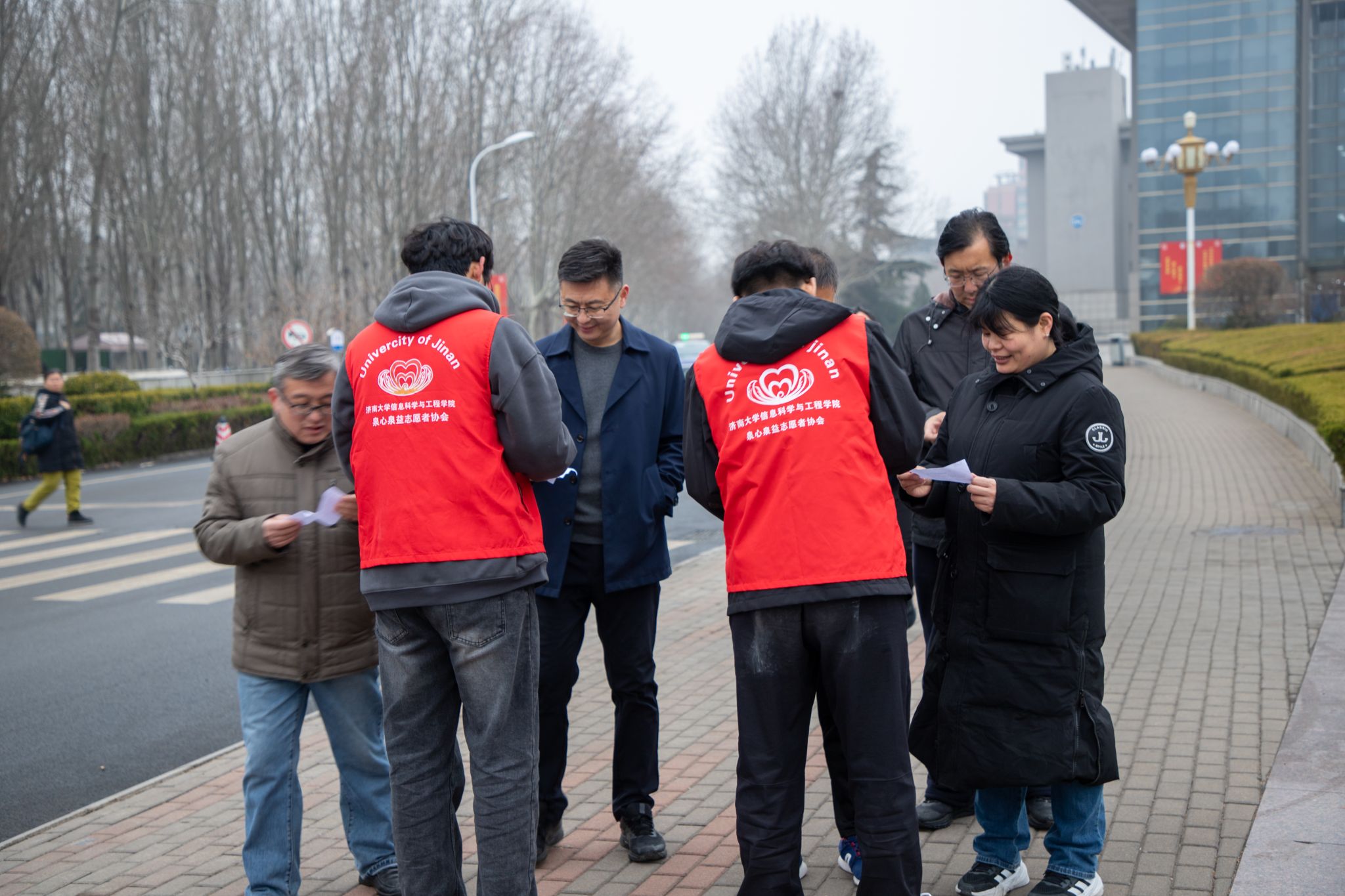活动伊始,参与活动的教职工在公司南门合影留念。之后,以系部为单位从公司南门出发,途经济大高速、国交公司北、二食堂、八食堂、大学路十教以南、升华广场前、机械公司,最终回到公司北门。活动沿途设置六个打卡点,集齐六枚印章签到打卡,增强了活动的趣味性。