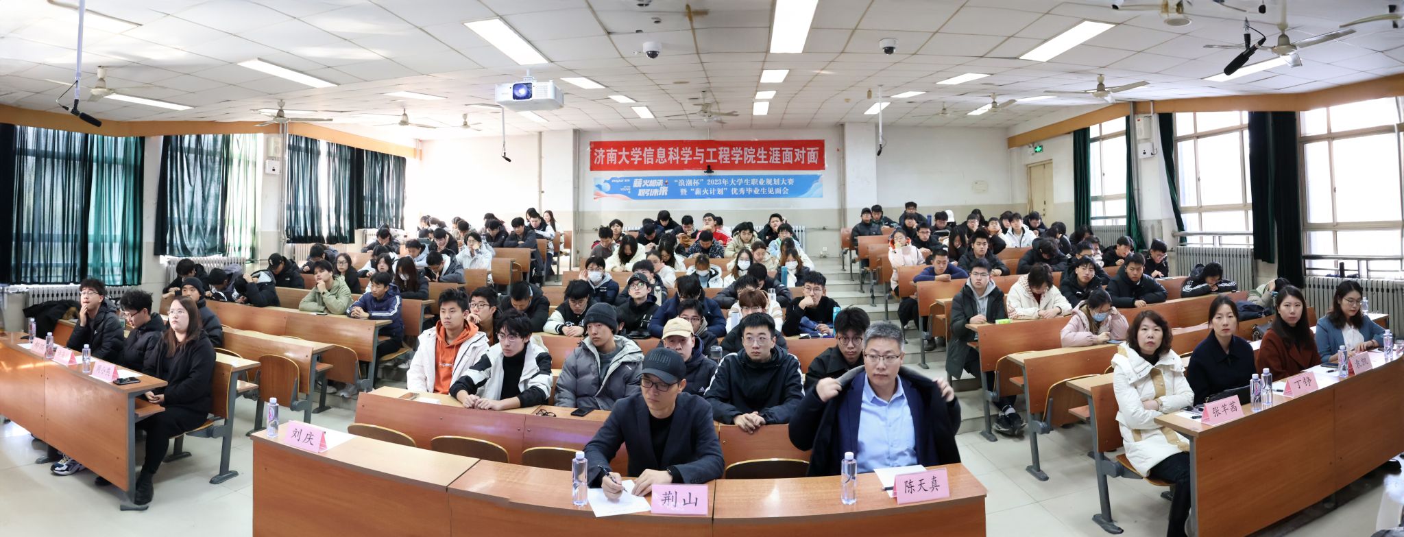 为贯彻落实党中央、国务院关于高校毕业生就业工作的决策部署,落实《国务院关于印发“十四五”就业促进规划的通知》精神,加强高校生涯教育和就业指导,搭建在校员工与优秀毕业生的沟通交流平台,进一步增强员工对就业流程的理解,以科学的方法规划个人职业生涯,11月25日上午,beat365亚洲体育官方网站在11教1101举办了“生涯面对面”优秀毕业生见面会暨“浪潮杯”2023年老员工职业规划大赛启动仪式,beat365亚洲体育官方网站副经理荆山、浪潮优派副总经理陈天真出席活动。公司辅导员、班主任代表及浪潮校企合作专业近200名学子参加活动。