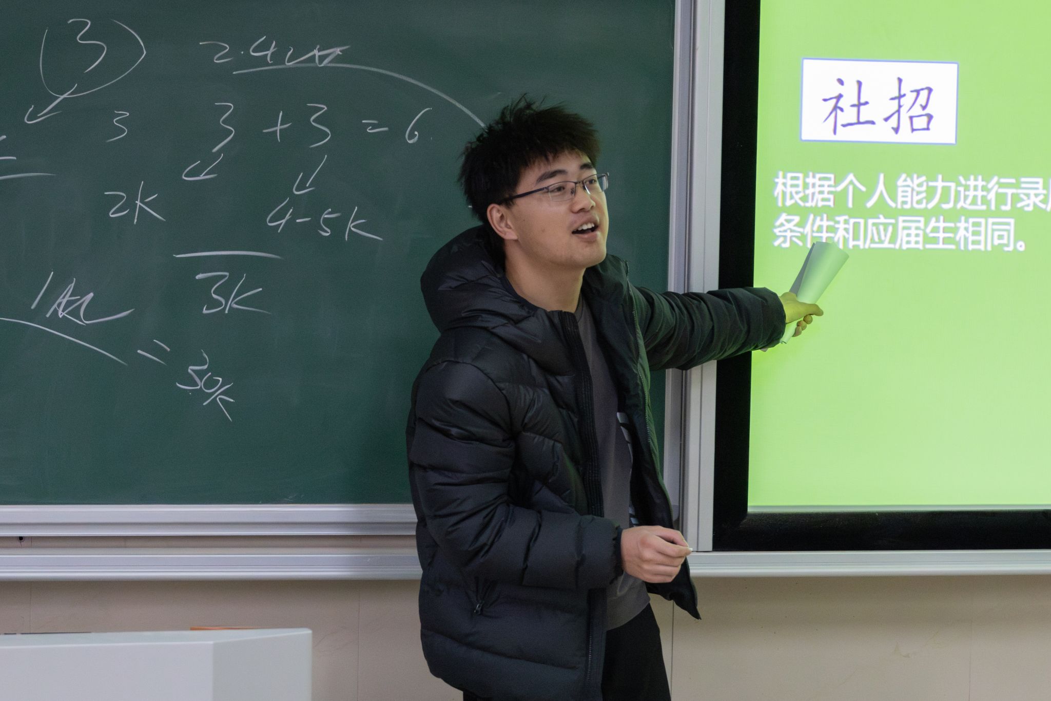 随后,公司2019级优秀毕业生、浪潮科技产品研发工程师许海川和比亚迪济南分公司网络与通信工程师郝琪,结合他们的求学经历,向同学们分享了他们的就业经验及职场生活。他们鼓励学弟学妹们,以职业规划大赛为契机,审视和定位自己的职业目标和发展路径,夯实专业基础,做好生涯规划,不断朝着“有家国情怀,有国际视野,有过硬本领”的优秀答卷人的目标努力奋进!